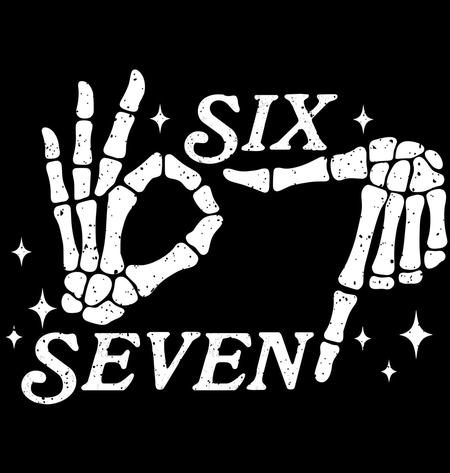 Pánské tričko Nesmrtelný Meme 67 Six Seven. Kostěné meme přináší kombinaci retro gotiky, internetové ironie a virální energie. Dvě kostlivé ruce předvádějí gesto, které znají všichni, kdo sledují TikTok, zatímco výrazné SIX SEVEN vzdává hold legendárnímu internetovému fenoménu.