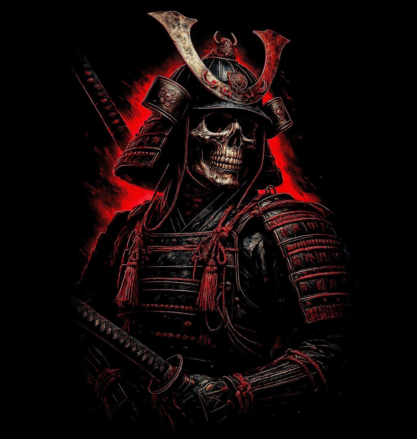 Pánská mikina Nesmrtelný Samuraj v Brnění. Silný a dramatický motiv inspirovaný japonskou tradicí a temnou estetikou. Dominantní kostlivec v detailně zpracovaném brnění vystupuje jako neohrožený samuraj, připravený čelit každé výzvě. Kombinace historického stylu a mystické atmosféry vytváří jedinečný vizuální zážitek.