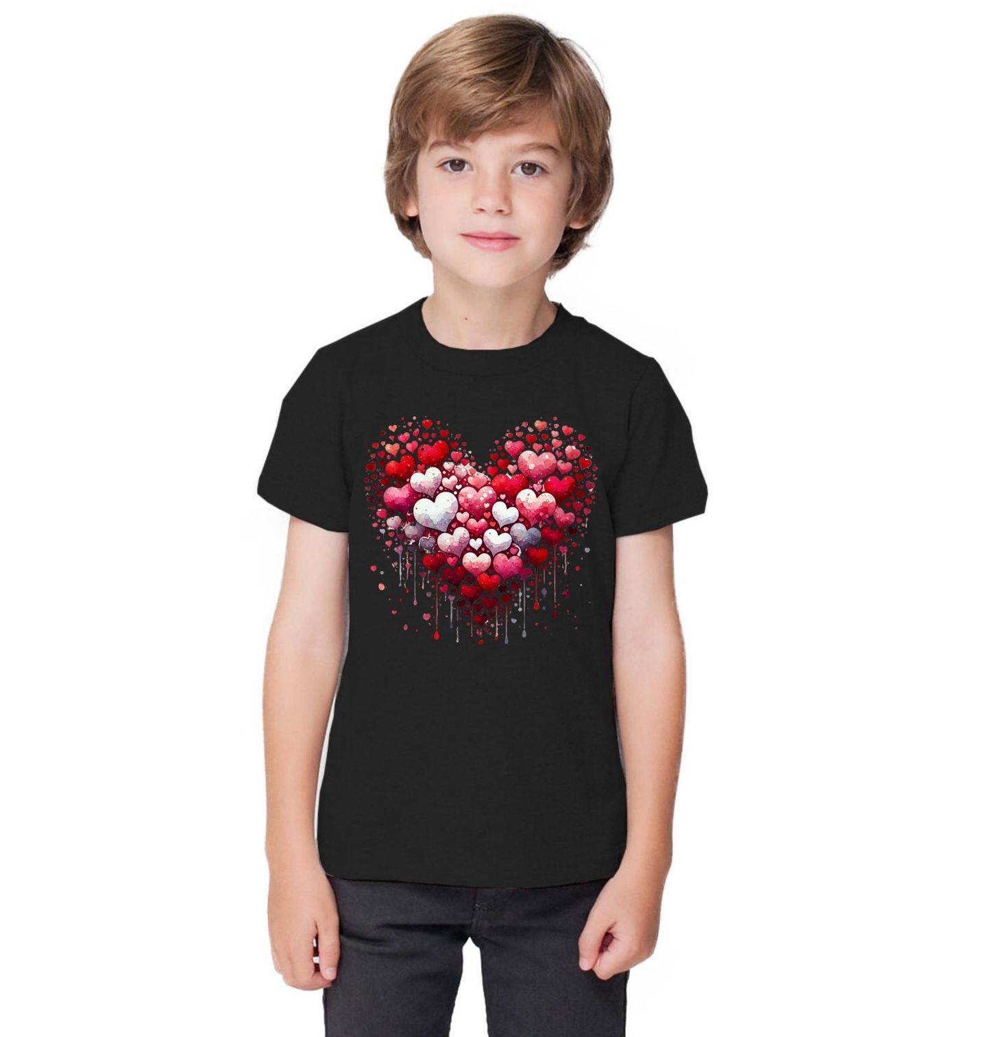 Dětské tričko Nezkrotná Láska. Výrazný motiv ve tvaru srdce složeného z desítek menších srdíček symbolizuje láska v celé její hloubce a intenzitě. Tento design je jako stvořený pro valentýn, kdy srdce představuje blízkost, vášeň i něhu. Láska zde není jen symbolem, ale hlavním sdělením – silná, živá a nepřehlédnutelná.