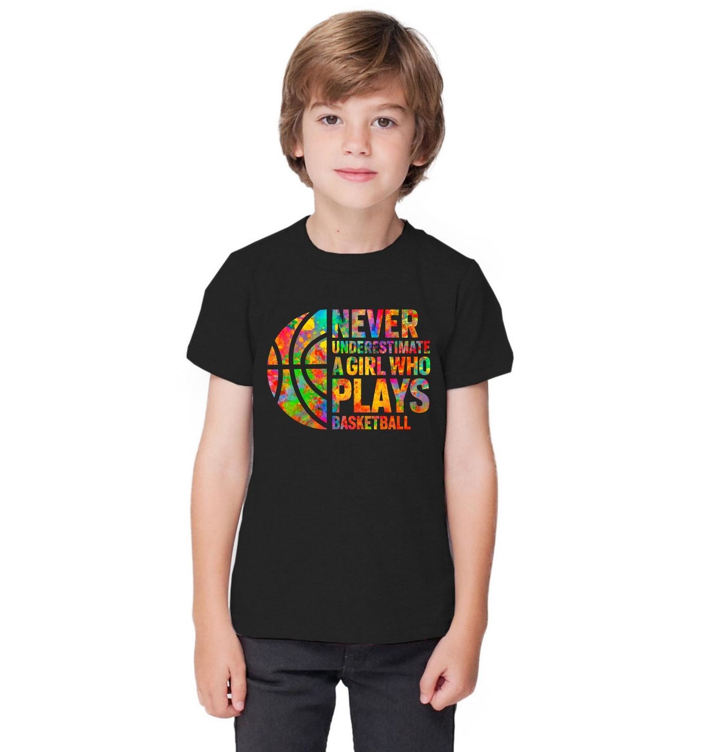 Dětské tričko Nikdy Nepodceňuj Basketbalistku. “Never underestimate a girl who plays basketball.” Výrazný a barevný motiv spojuje energii, sebevědomí a vášeň pro basketbal v jedinečném uměleckém zpracování. Tento design jasně říká, že sport není otázkou pohlaví, ale odhodlání, talentu a tvrdé práce. Dynamické barvy a motiv basketbalového míče podtrhují sílu pohybu, soutěživosti a individuality.