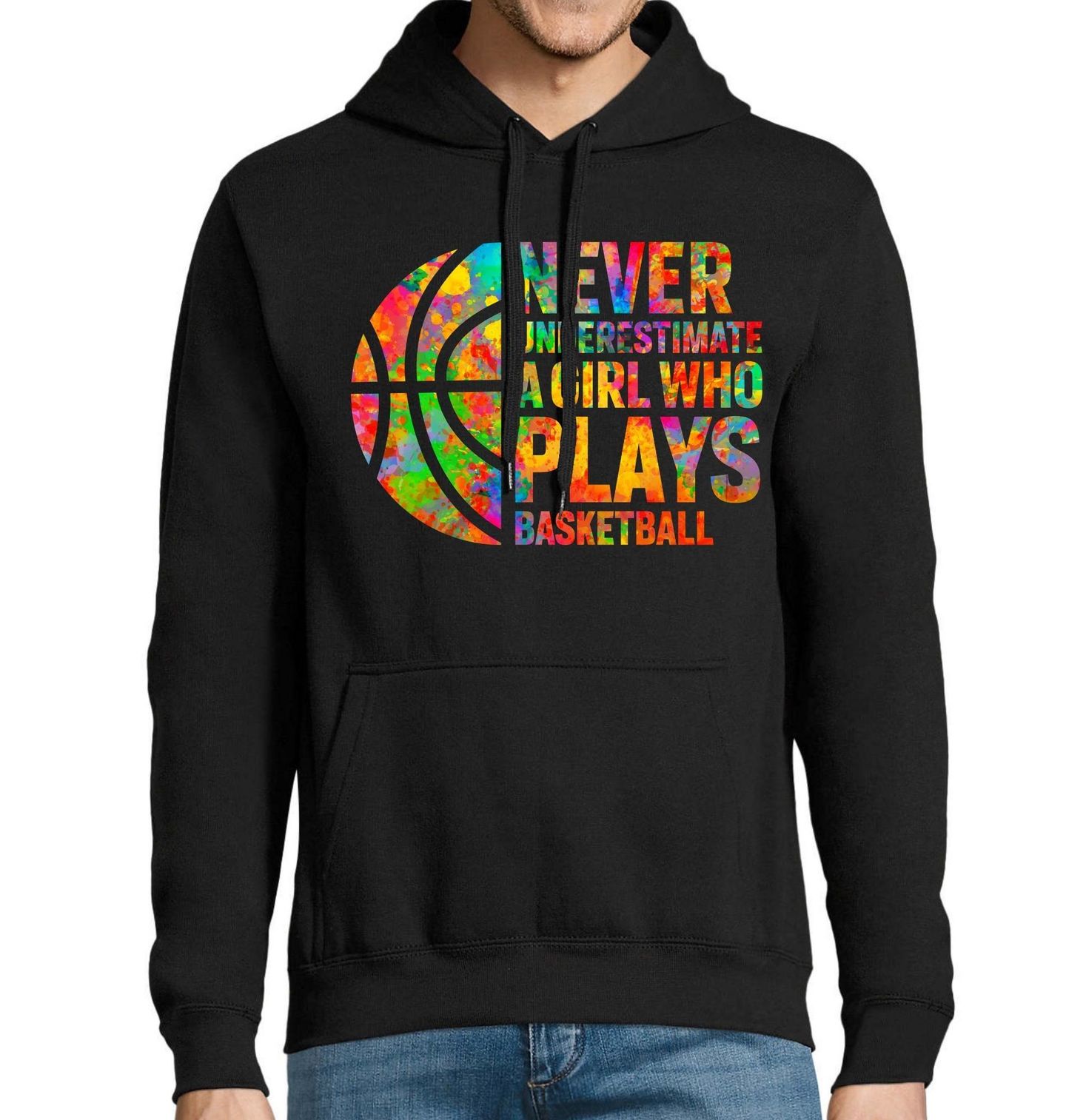 Pánská mikina Nikdy Nepodceňuj Basketbalistku. “Never underestimate a girl who plays basketball.” Výrazný a barevný motiv spojuje energii, sebevědomí a vášeň pro basketbal v jedinečném uměleckém zpracování. Tento design jasně říká, že sport není otázkou pohlaví, ale odhodlání, talentu a tvrdé práce. Dynamické barvy a motiv basketbalového míče podtrhují sílu pohybu, soutěživosti a individuality.