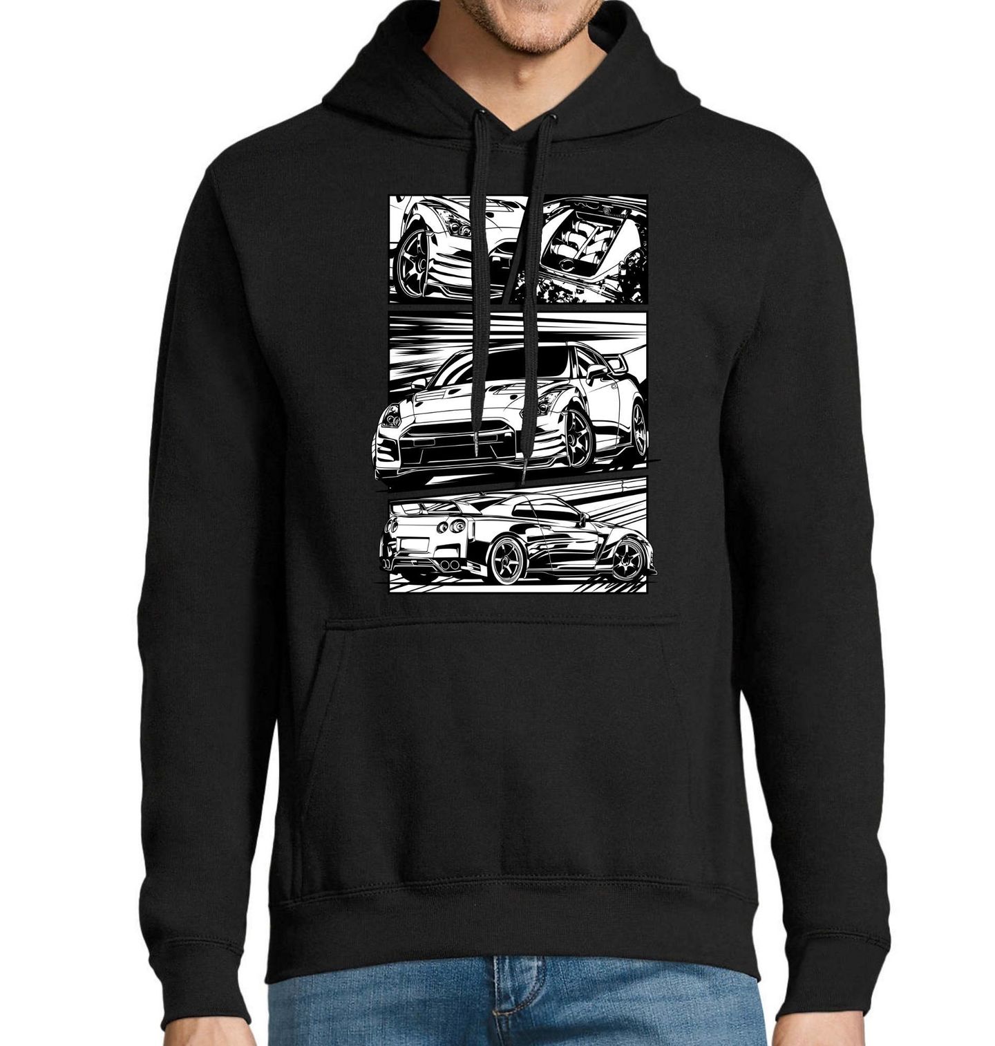 Pánská mikina Nissan JDM Comic. Dynamický komiksový motiv zachycuje ikonické japonské auto v plné síle a rychlosti. Ilustrace je inspirovaná manga a street racing stylem – ostré linie, kontrastní černobílé panely a detailní zpracování karoserie i techniky dávají designu výrazný charakter. Motiv kombinuje moderní JDM kulturu, výkon a komiksovou estetiku, takže osloví každého fanouška rychlých aut, tuningu a japonské automobilové scény.