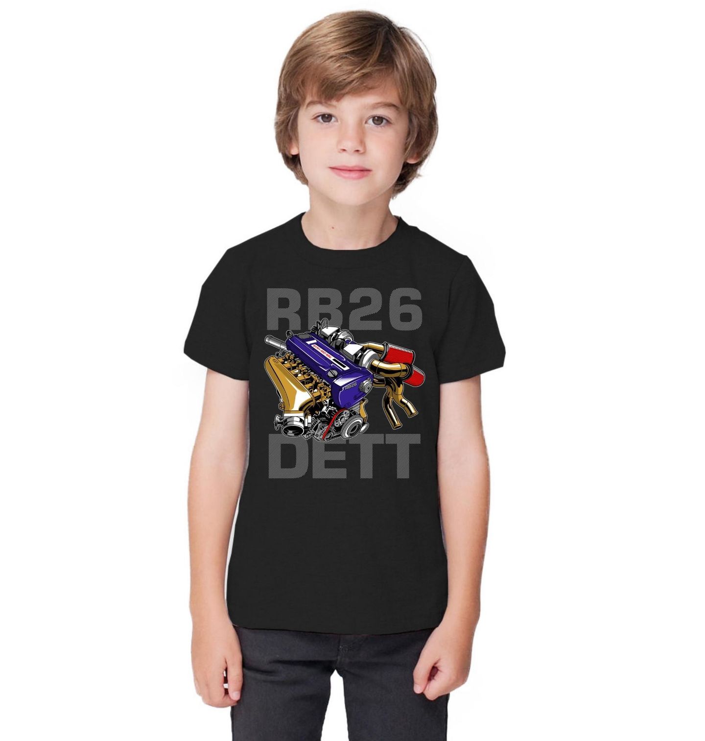 Dětské tričko Nissan RB26 DETT Engine. Detailní motiv legendárního motoru RB26 DETT osloví každého fanouška japonských sportovních aut a techniky. Design zachycuje slavný řadový šestiválec s twin turbo, který se stal symbolem výkonu a motorsportu. Pokud miluješ rychlé auto, výrazný zvuk a kultovní JDM styl, tento motiv je přesně pro tebe.