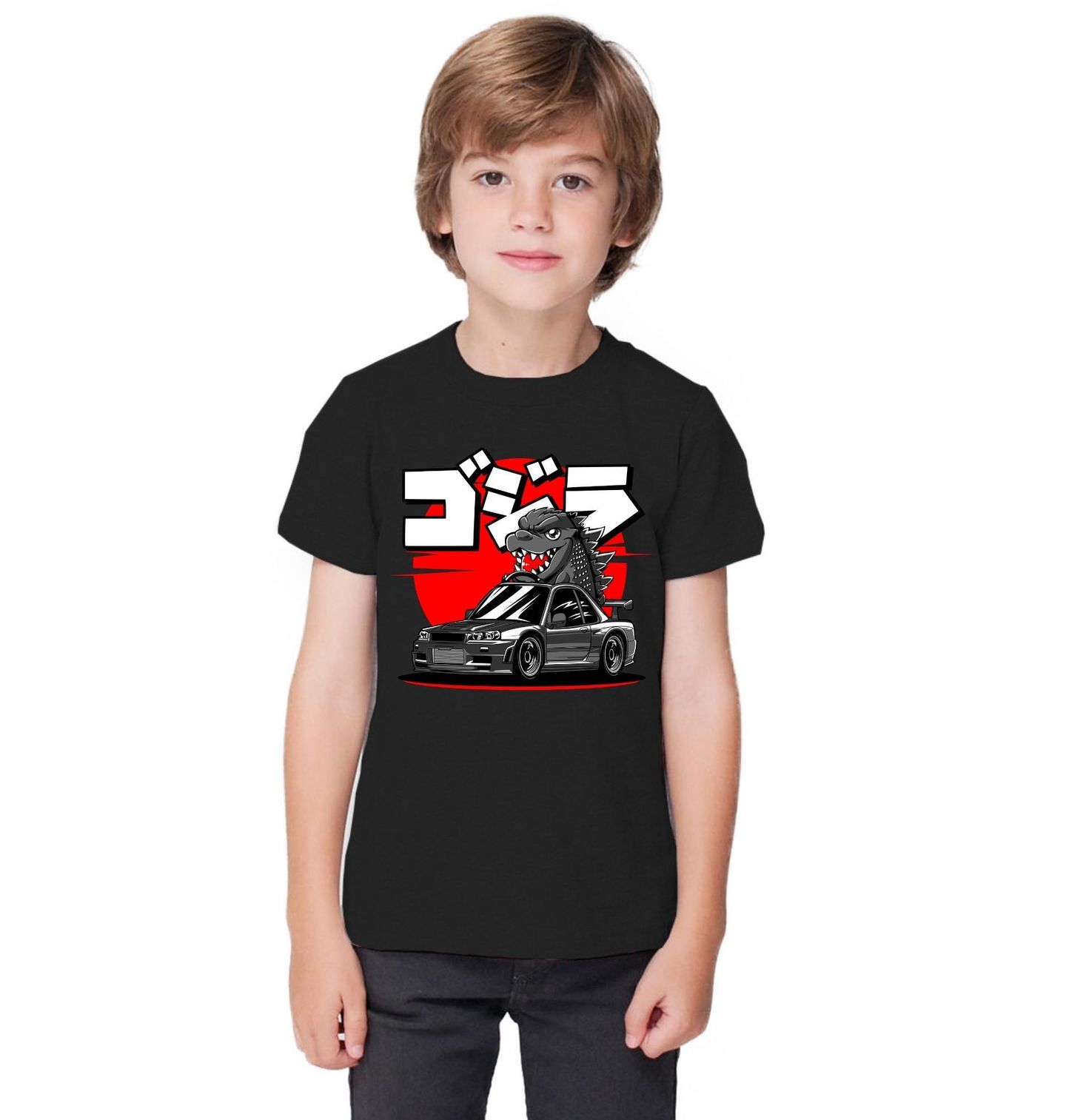 Dětské tričko Nissan Skyline Godzilla. Dominantní sportovní auto s agresivním bodykitem a výrazným zadním křídlem připomíná legendární japonské modely z éry street racingu. Nad vozem se tyčí monstrum inspirované Godzilla estetikou, které dodává motivu sílu, energii a nezaměnitelný charakter. Skvělá volba pro milovníky JDM stylu, tuningové scény a výrazného designu, který okamžitě zaujme.