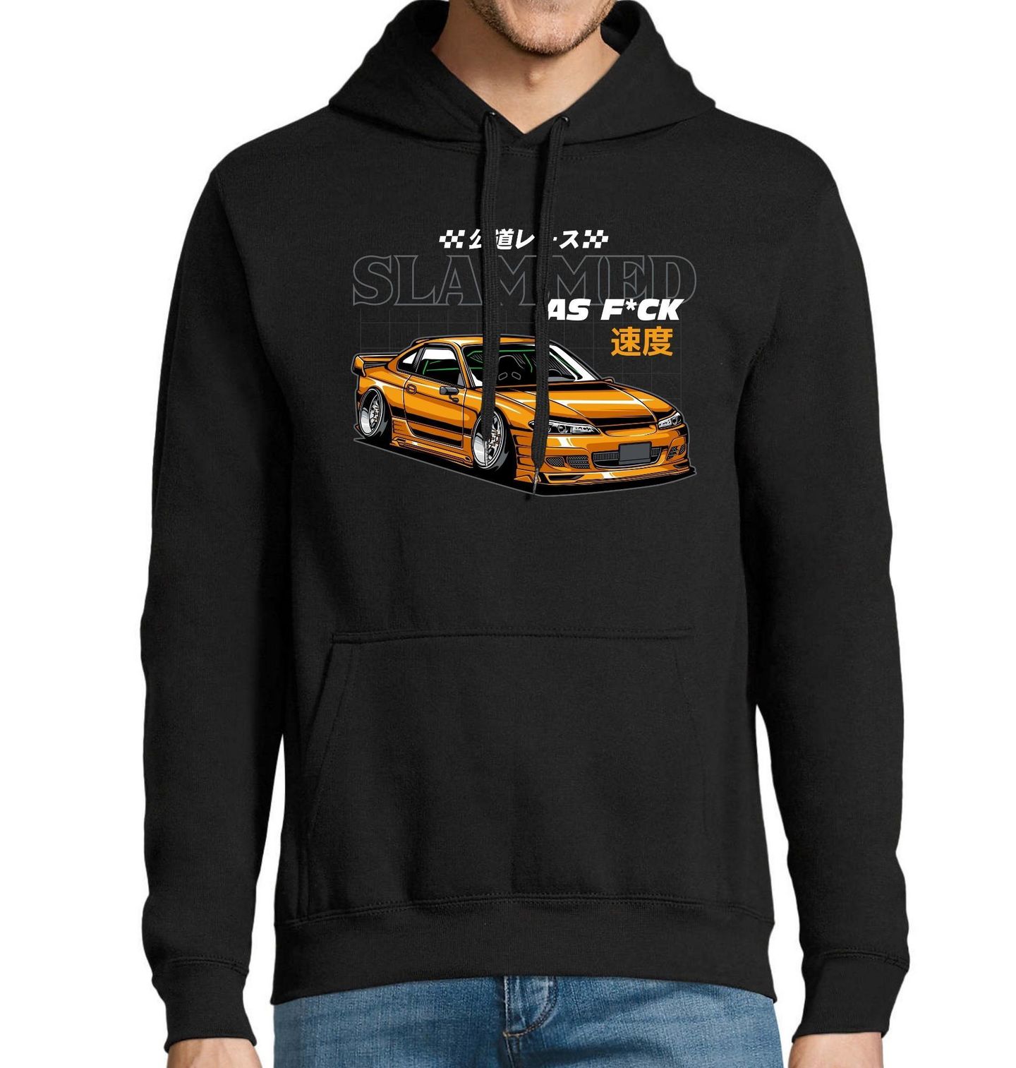 Pánská mikina Nissan Slammed As Fuck. Motiv je inspirovaný legendárním japonským sportovním vozem Nissan Silvia S15, ikonou drift scény a JDM kultury. Nízký stance, agresivní bodykit a typická silueta jasně odkazují na tuto generaci, která patří mezi nejžádanější auta z Japonska. Toto auto je symbolem drift kultury, rychlosti a individuality, kterou proslavilo Japonsko po celém světě.