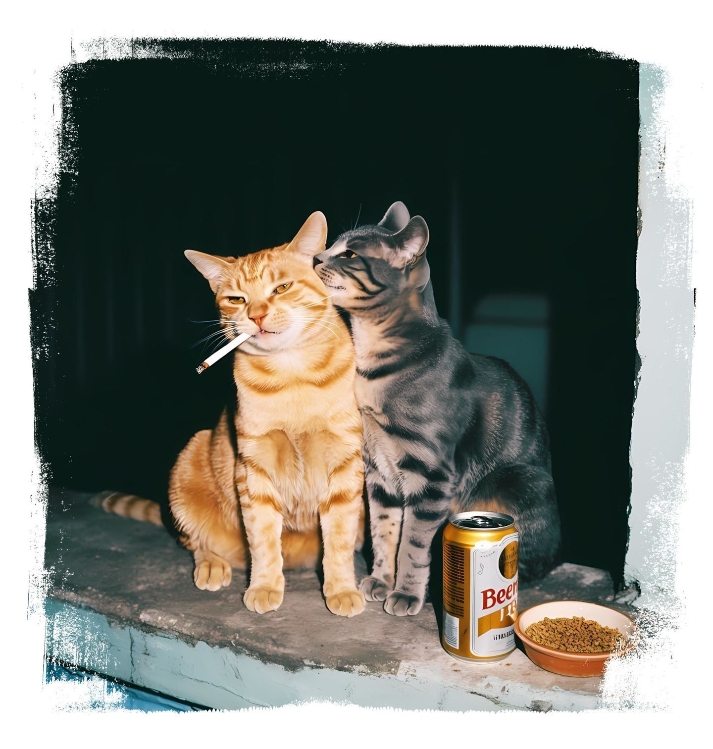 Pánské tričko Noční Bohémské Kočky. Tento design kombinuje humor, nadsázku a městský styl, který zaujme každého, kdo má rád odvážné a neotřelé motivy. Kočka v tomto provedení působí jako drsný pouliční parťák, zatímco pivo a cigareta dodávají celému obrazu rebelskou atmosféru. Detailní zpracování a realistický nádech vytváří silný vizuální dojem, který se jen tak neztratí.