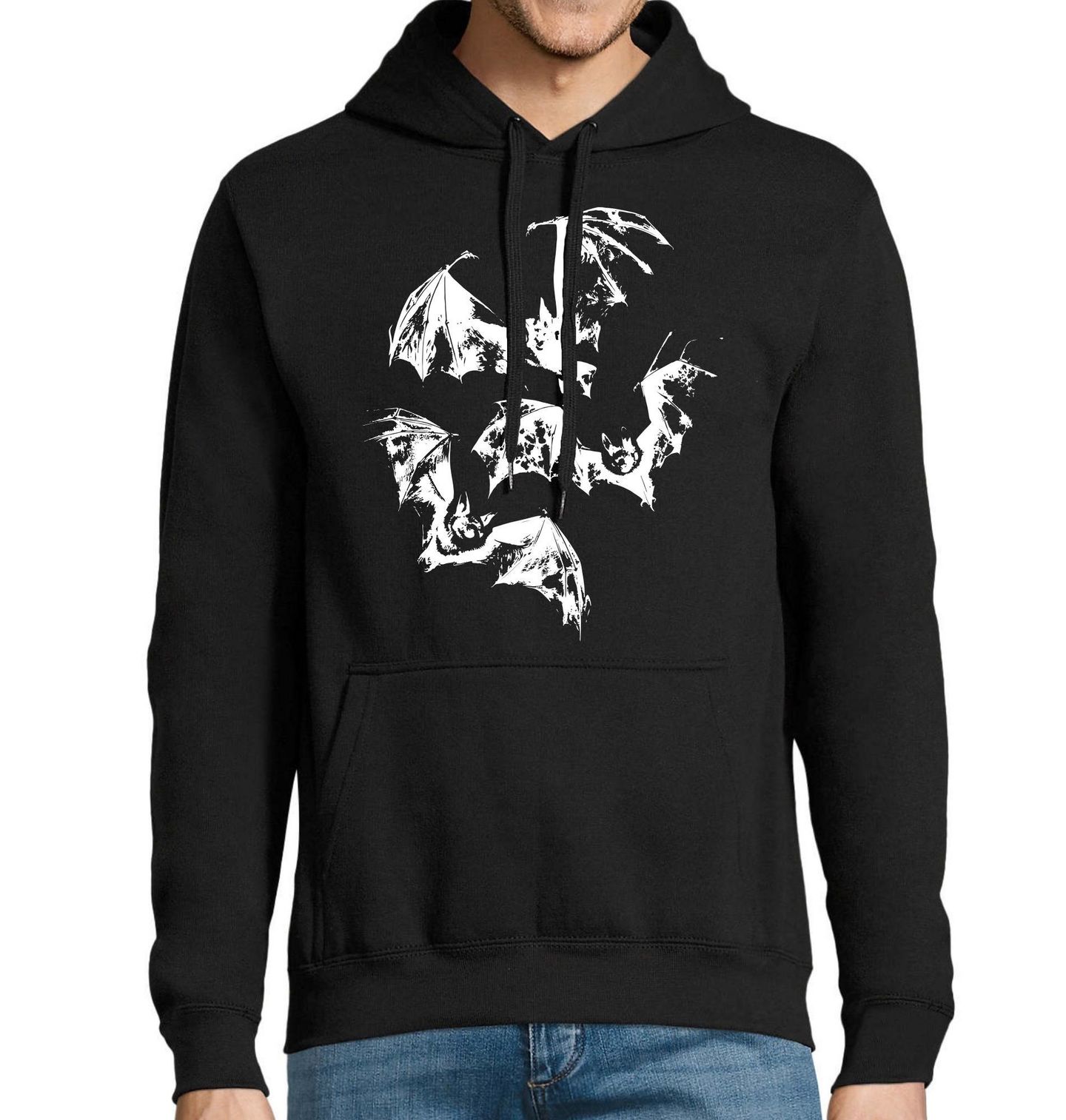 Pánská mikina Noční Let Netopýrů. Dramatický černobílý design netopýrů zachycuje dynamický let v temnotě. Silný kontrast černé a bílé vytváří tajemnou atmosféru noci. Ideální design pro fanoušky hororu, gotiky a nočních motivů.