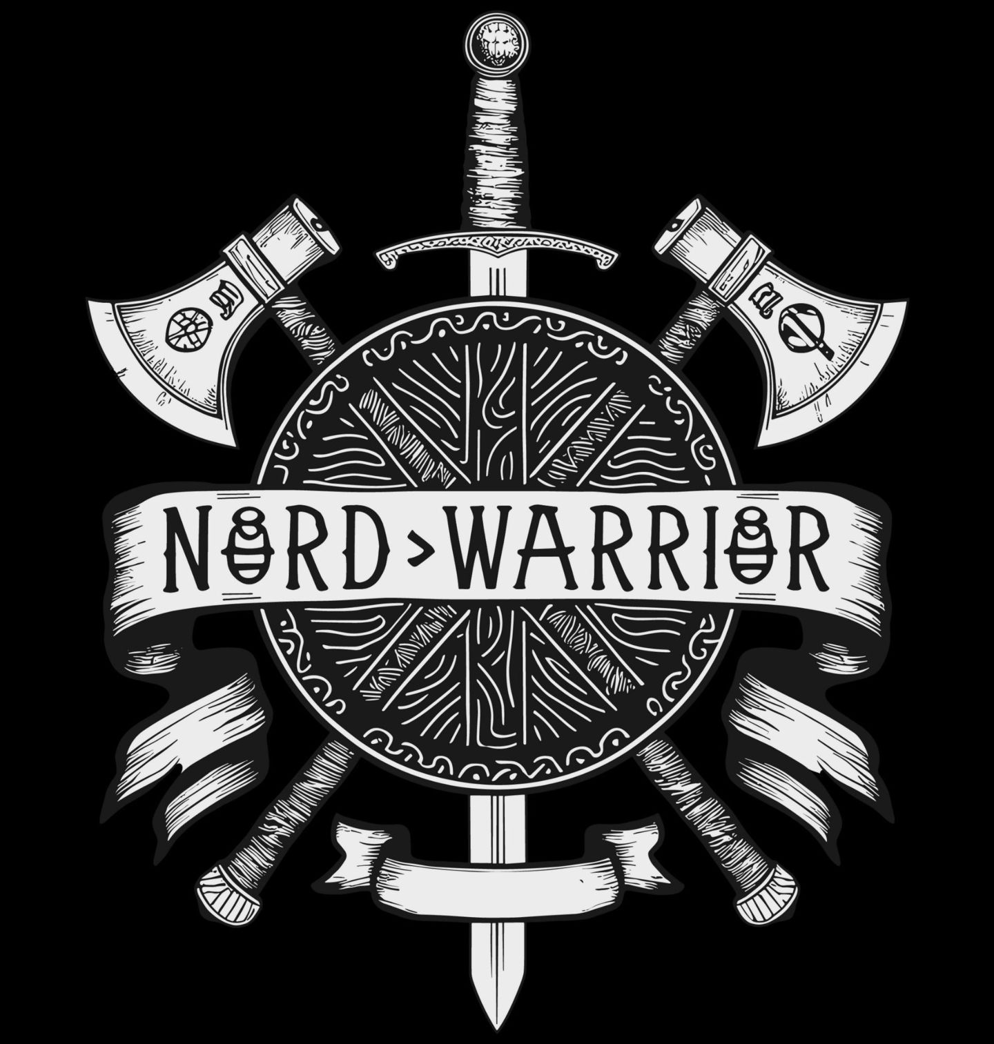 Pánské tričko Nordský Válečník NØRD WARRIØR. Výrazný nordský viking motiv inspirovaný severskou mytologií a válečnou symbolikou. Dominantou grafiky je masivní štít, za kterým se kříží sekera a meč – tradiční zbraně severu, představující sílu, čest a odvahu. Design je ideální pro milovníky Vikingů, severské historie a nordské estetiky.