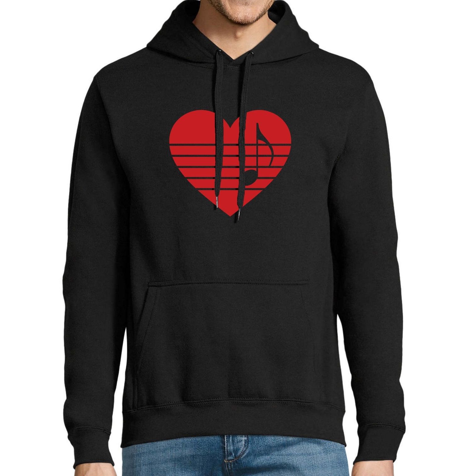 Pánská mikina Notová Osnova v Srdci. Pro všechny, kterým hudba proudí přímo ze srdce! Motiv srdce s notami vyjadřuje lásku k hudbě, rytmu a melodiím. Ať už jsi hudebník, zpěvák, nebo jen milovník dobré hudby, tohle tričko ti bude ladit!