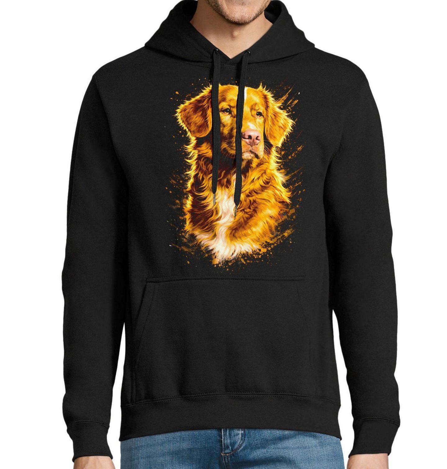 Pánská mikina Novoskotský retrívr. Tento výrazný motiv zachycuje plemeno Nova Scotia Duck Tolling Retriever, které je známé svou energií, inteligencí a jedinečným vzhledem. Tento aktivní a hravý pes je ideálním společníkem pro každého, kdo miluje pohyb, přírodu a práci se psem. Každý pejskař ocení jeho bystrou mysl, přátelskou povahu a nadšení pro aportování.