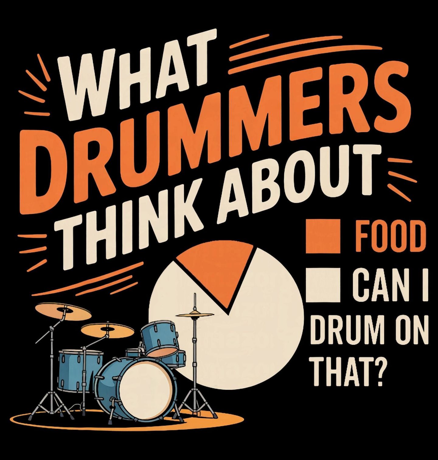 Pánské tričko O čem bubeníci přemýšlejí - Food Can I drum on that? „What drummers think about“ – tedy „O čem bubeníci přemýšlejí“ Graf ukazuje dvě možnosti: Food (jídlo) a Can I drum on that? (Můžu na to hrát jako na bubny?). Vtipný motiv ideální pro každého, kdo miluje bicí soupravu.