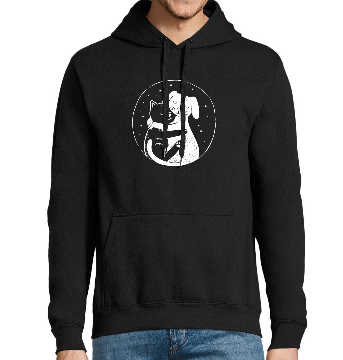 Pánská mikina Objetí Kočky a Psa