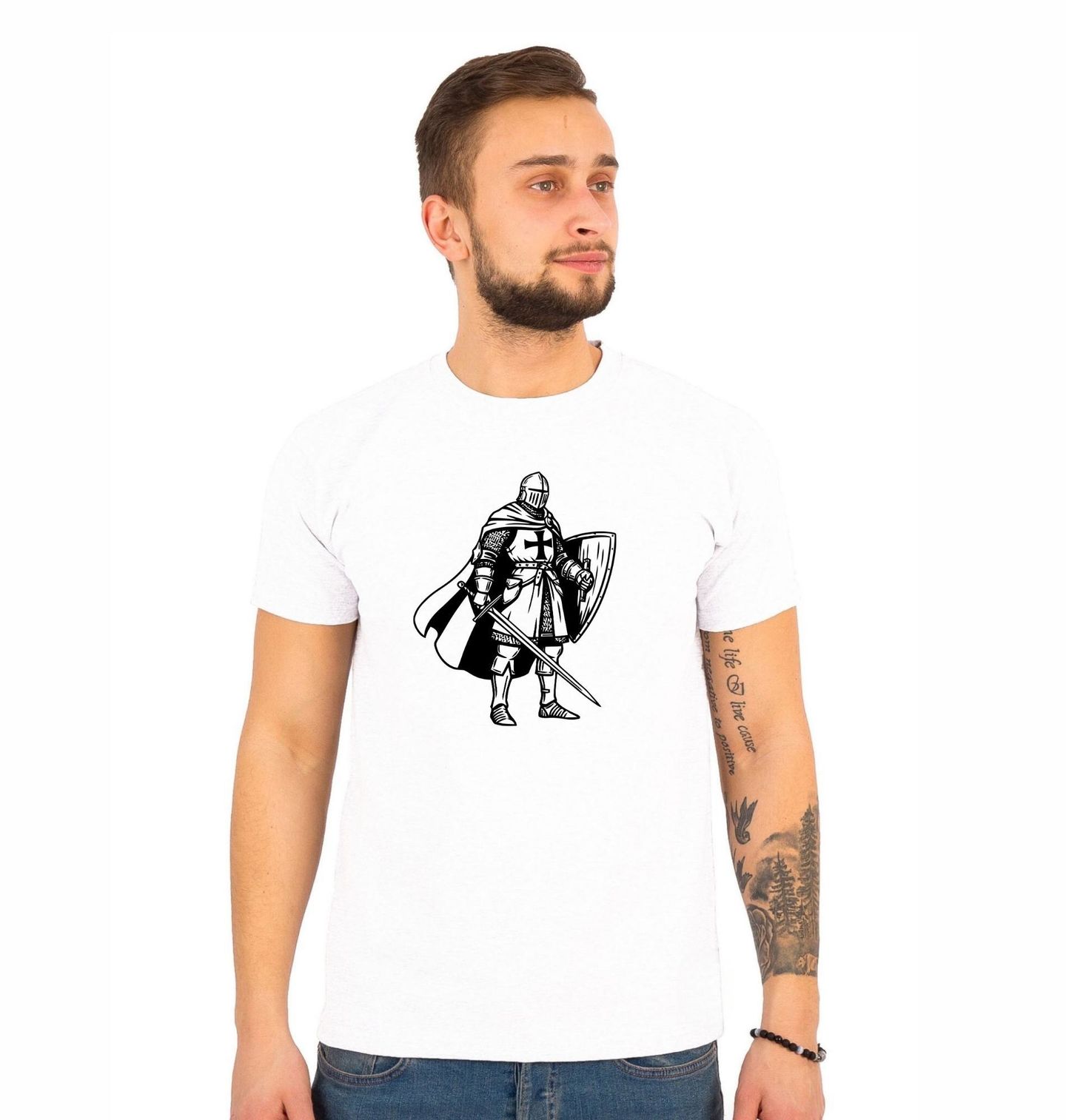 Pánské tričko Oddaný Templář Řádu. Výrazný kříž na zbroji jasně odkazuje na dobu, kdy křížácké výpravy formovaly evropské i blízkovýchodní dějiny. Templáři, celým názvem Chudí rytíři Krista a Šalomounova chrámu, byli jedním z nejmocnějších křesťanských rytířských řádů středověku. Rytíři nosili charakteristický bílý plášť s červeným křížem.