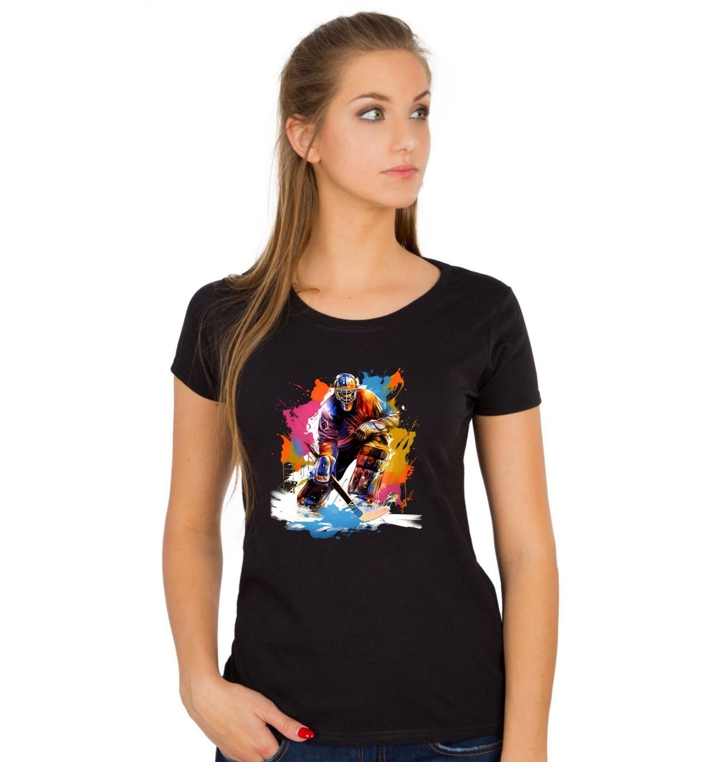 Dámské tričko Odvážný Hokejový Brankář. Tento výrazný motiv zachycuje okamžik, kdy hokejista – odvážný brankář – čelí střele v plné koncentraci. Barevné malířské efekty dodávají energii a dynamiku, díky nimž doslova ožívá hokej jako rychlý a napínavý sport. Perfektní motiv pro všechny fanoušky, hráče i brankáře, kteří vědí, že poslední slovo má vždy ten mezi tyčemi.