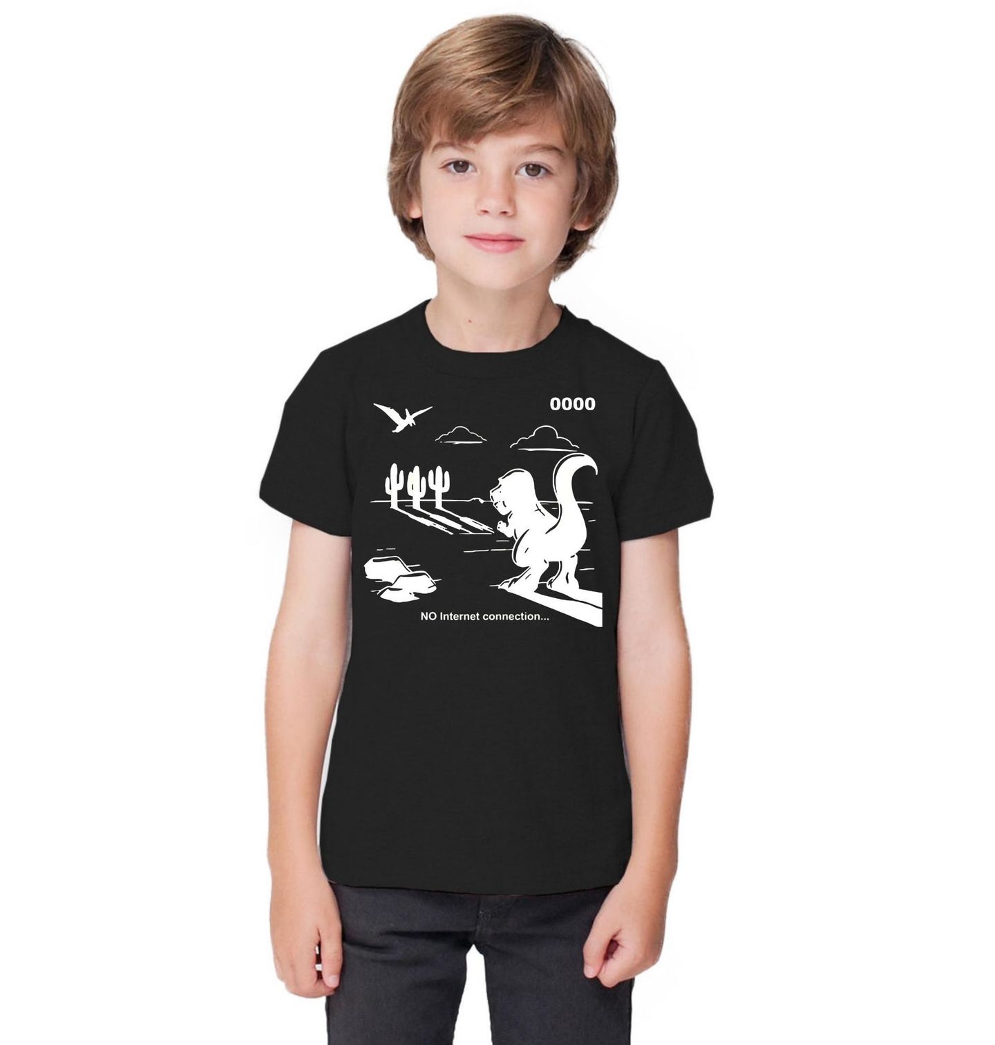 Dětské tričko Offline Dino Hra. No internet connection. Tento design je okamžitě rozpoznatelnou ikonou každého, kdo někdy ztratil připojení. Nabízí vtipnou a nostalgickou připomínku toho, že i bez internetu se dá přežít a dokonce i bavit. Minimalistické bílé provedení na černém pozadí zaručuje, že motiv vynikne a každý pochopí jeho význam. Je to perfektní volba pro geeky, hráče a každého, kdo ocení retro humor digitální éry.