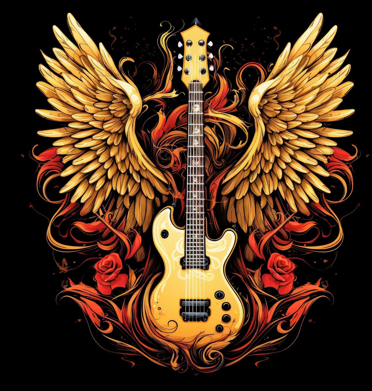 Pánské tričko Ohnivá Kytara s Křídly. Elektrická kytara a andělská křídla v ohnivém designu je poctou legendám rock and rollu i tvému vlastnímu stylu. Toto tričko je ideální pro milovníky rockové módy, hudební nadšence i fanoušky nezávislého vzhledu. Výrazný potisk s detailně propracovanou kytarou a zlatými křídly dává jasně najevo, že hudba je životní energie.