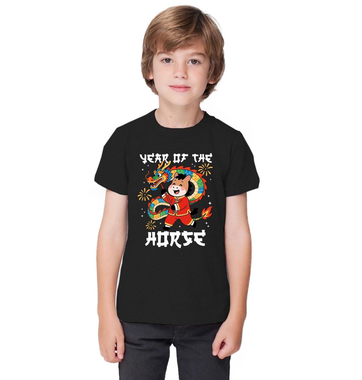 Dětské tričko Ohnivý Kůň Roku 2026 Čínský Dračí Tanec
