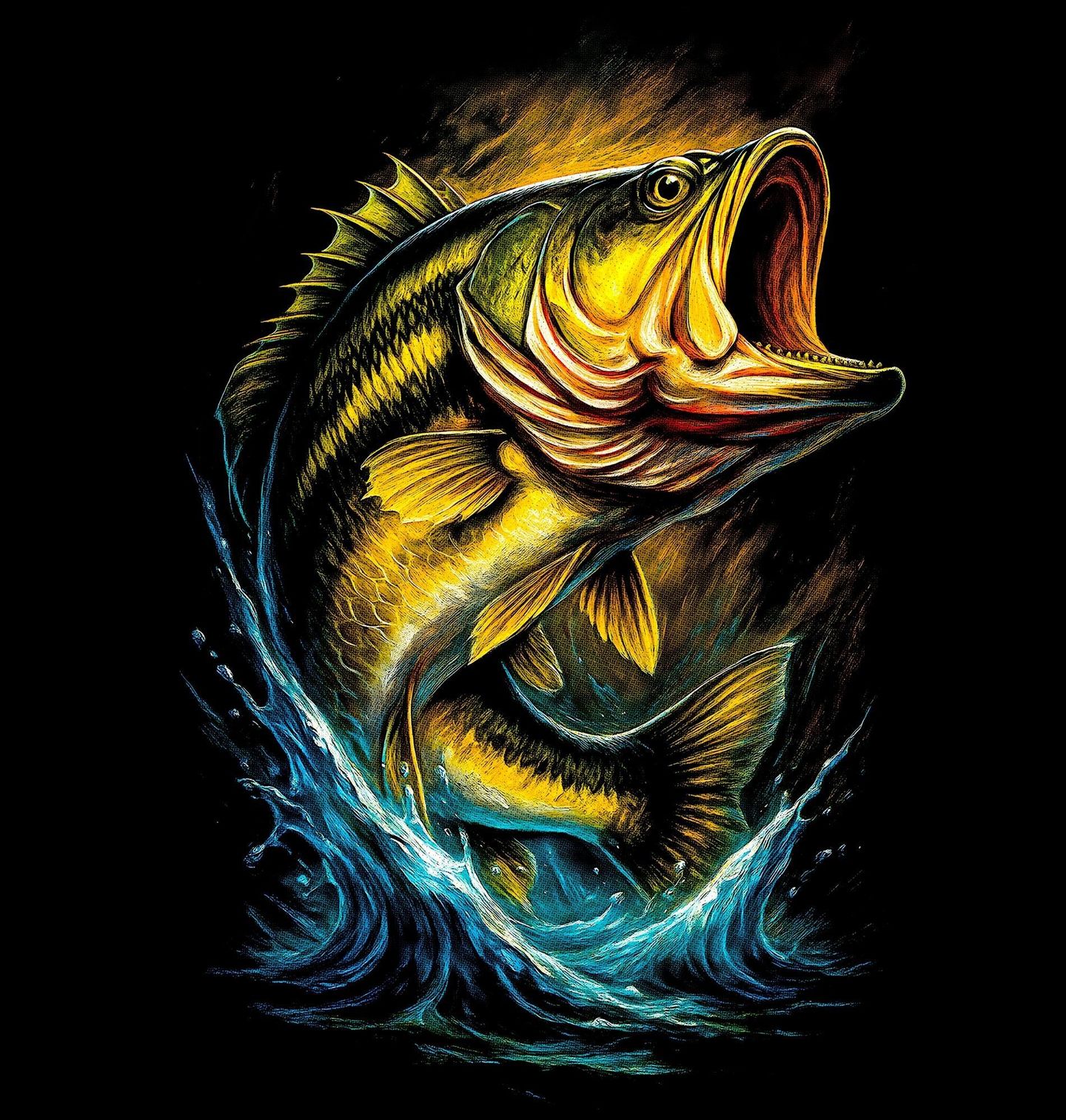 Pánské tričko Okoun obecný nad Hladinou. Výrazný motiv zachycuje okounovce (largemouth bass) v dramatickém okamžiku útoku, kdy se s otevřenou tlamou dere z vody. Tento ikonický dravec je symbolem akčního rybaření, rychlé reakce a surové síly, kterou miluje každý rybář. Okounovec patří mezi nejoblíbenější cíle sportovního rybolovu po celém světě a jeho explozivní záběr na hladině je nezapomenutelný zážitek.