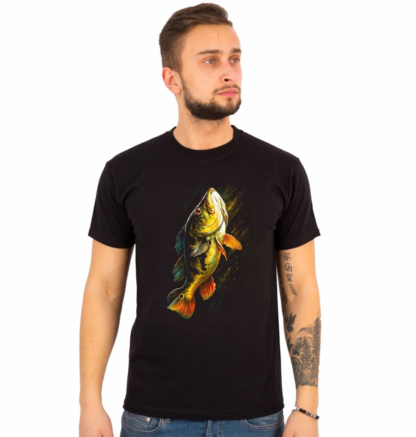 Pánské tričko Okoun Paví. Dynamický motiv zachycuje okouna pavího (Cichla), legendárního tropického dravce známého svou agresivitou a explozivními výpady. Tento design je ideální pro každého rybáře, pro kterého je rybaření výzvou, dobrodružstvím a soubojem s opravdovým predátorem. Skvělá volba pro fanoušky exotických vod, přívlače a nekompromisních ryb.