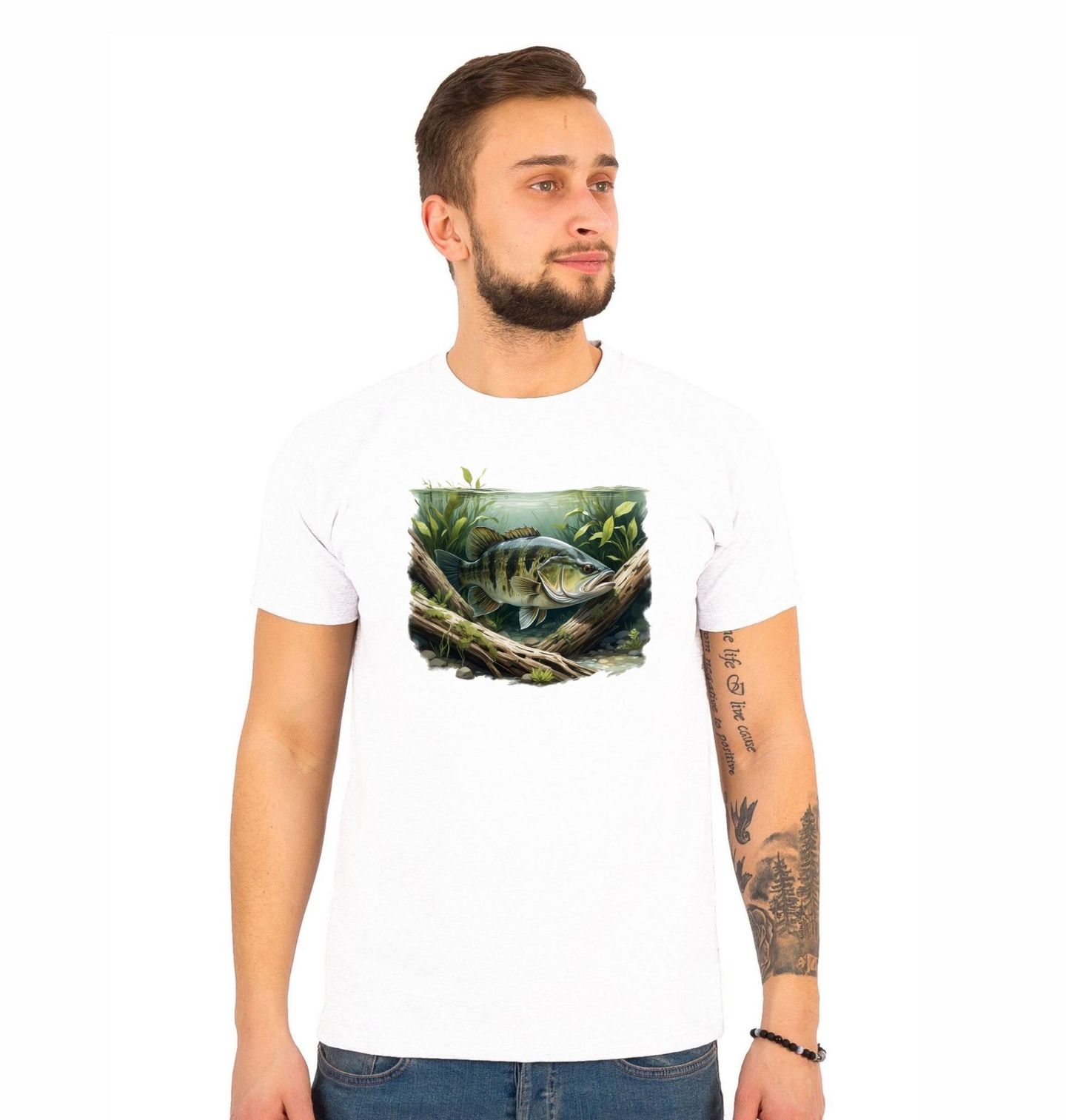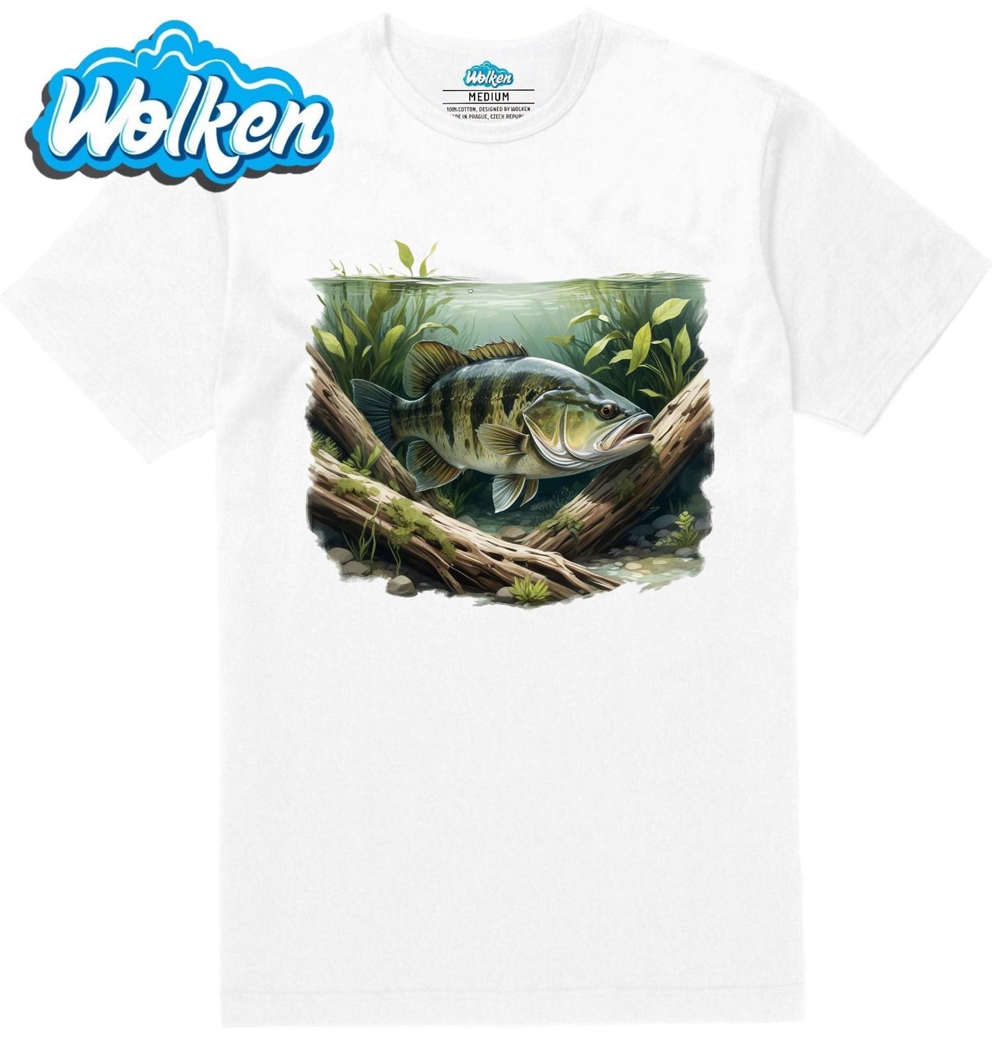 Pánské tričko Okoun pod Vodou. Objev krásu podvodního světa s motivem, který zachycuje okouna v jeho přirozeném prostředí – mezi kořeny, rostlinami a tichou vodní hloubkou. Tato ryba je snem každého vášnivého rybáře, který si užívá rybaření v klidu jezera.
