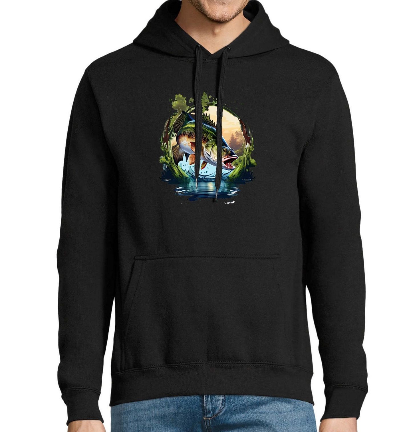 Pánská mikina Okoun z Hlubin Jezera. Krásná přírodní scéna s dravým výskokem okouna přináší motiv, který ocení každý zapálený rybář. Tahle ryba není jen obyčejný úlovek – je to symbol síly, divokosti a ryzího sportovního rybaření.