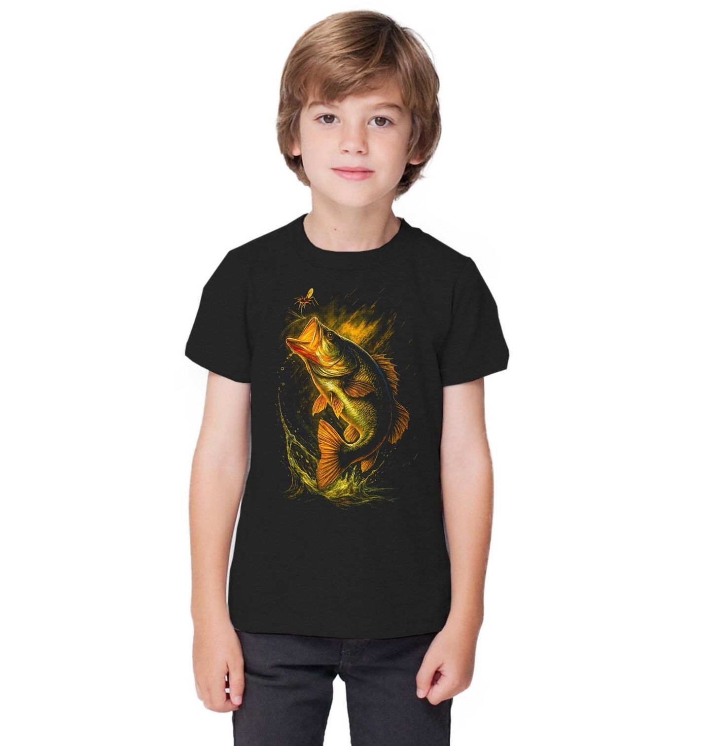 Dětské tričko Okounek pstruhový chytající Hmyz. Tento dynamický motiv zachycuje okounovce pstruhového (Largemouth Bass) v okamžiku hladinového útoku na hmyz. Rybaření s okounovcem je o přesnosti, načasování a odvaze jít po záběru. Právě proto je tento motiv určený pro každého, kdo se označuje jako rybář tělem i duší a miluje adrenalinové lovy na hladinové nástrahy.