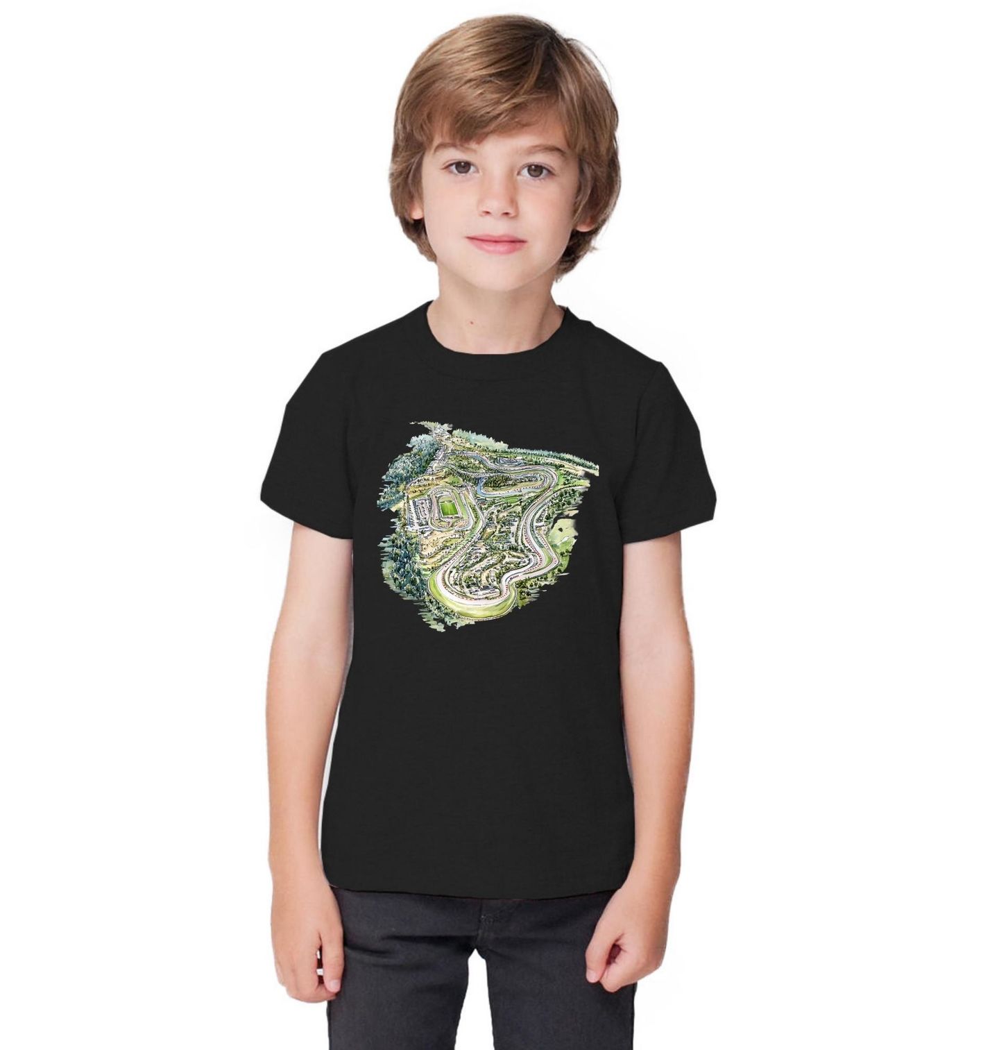 Dětské tričko Okruh šampionů F1. Ilustrovaný motiv zachycující spletitý závodní okruh, kde se každá formule snaží získat nejlepší čas na trati. Tento jedinečný potisk potěší každého fanouška motorsportu, který miluje rychlost, vůni spálených pneumatik a zvuk motorů na okruhu. Ideální pro milovníky závodních her, Formule 1 i automobilového umění.