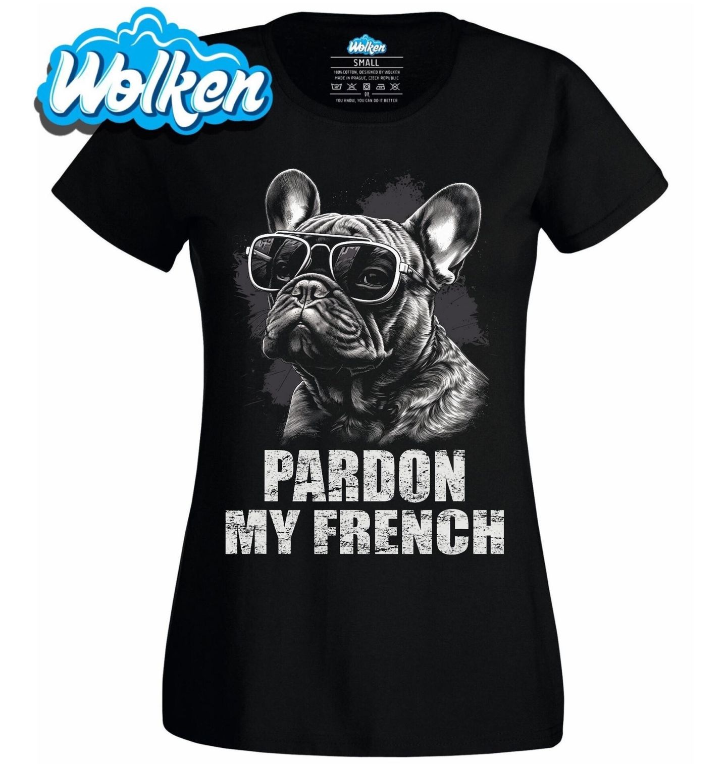 Dámské tričko Omluvte mého Francouzského Buldočka. „Pardon My French“ je věnován plemeni Francouzský buldoček, které je oblíbené pro svůj jedinečný vzhled a charismatickou povahu. Pes v cool brýlích dodává motivu šmrnc a je ideální volbou pro každého pejskaře, který má rád humor a styl.