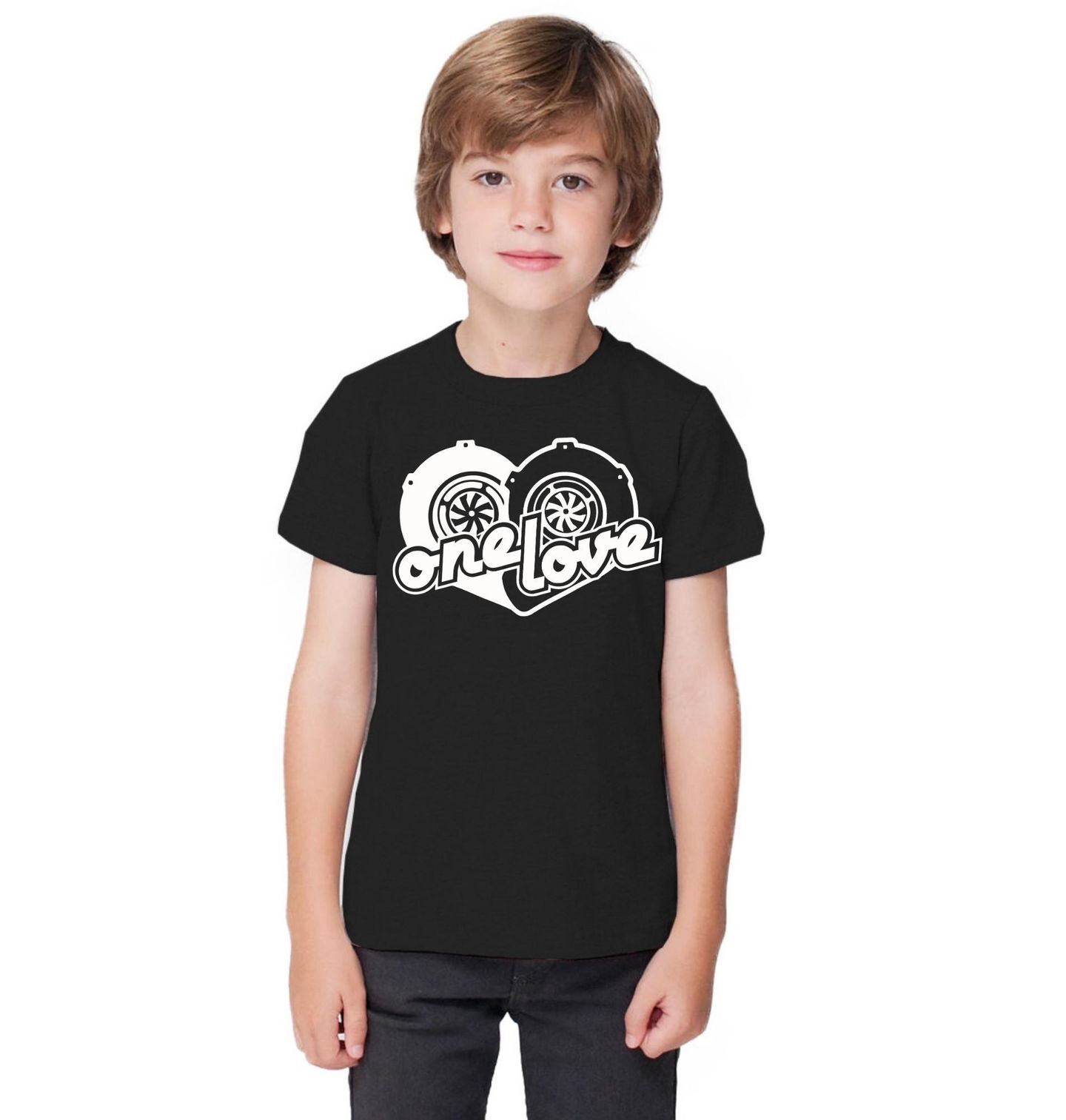 Dětské tričko One Love Turbo. Výrazný tuning motiv pro každého, kdo miluje výkon, zvuk turba a svět upravených aut. Grafika zobrazuje dvě turbodmychadla a stylový nápis „one love“, který symbolizuje vášeň pro rychlost, úpravy a motorsport kulturu. „Jedna láska“ – v tomto případě jde o jasný odkaz na to, že auto, turbo a rychlá jízda jsou pro fanoušky tuningu srdeční záležitostí.