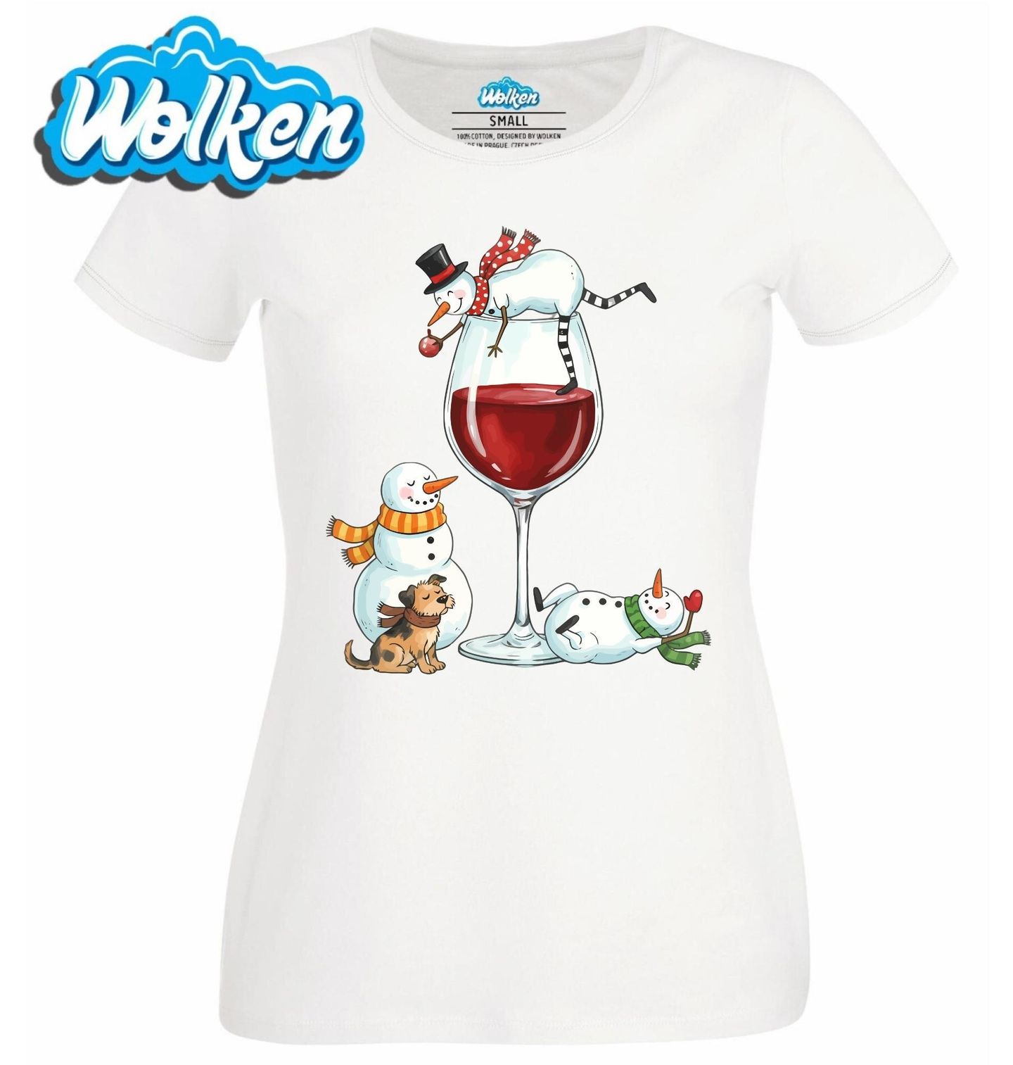 Dámské tričko Opilí Vánoční Sněhuláci. Tento veselý motiv spojuje vše, co milujeme na svátcích – Vánoce, červené víno, kapku alkoholu a pořádný humor. Roztomilí sněhuláci dovádějící kolem sklenky naplněné vínem ukazují, že zimní zábava nezná hranic – ani těch tekutých!