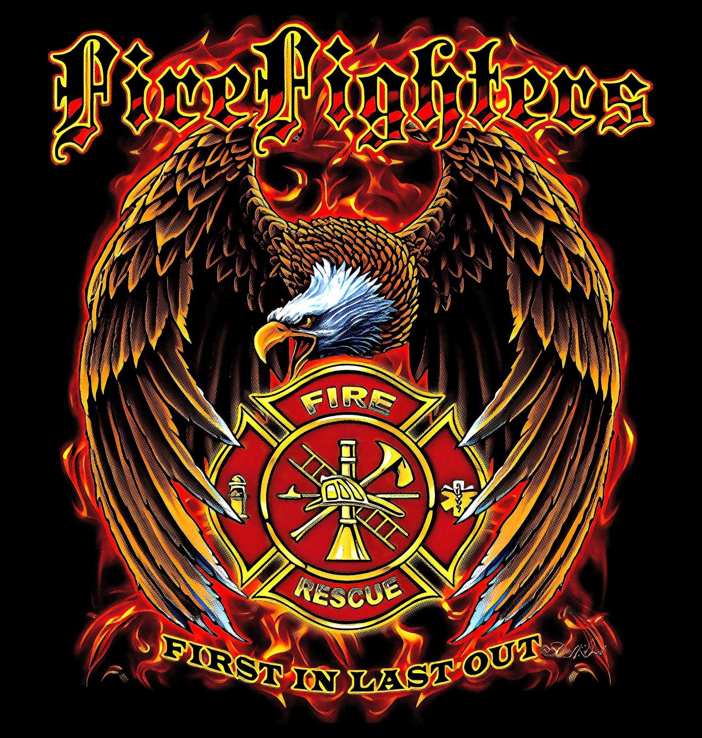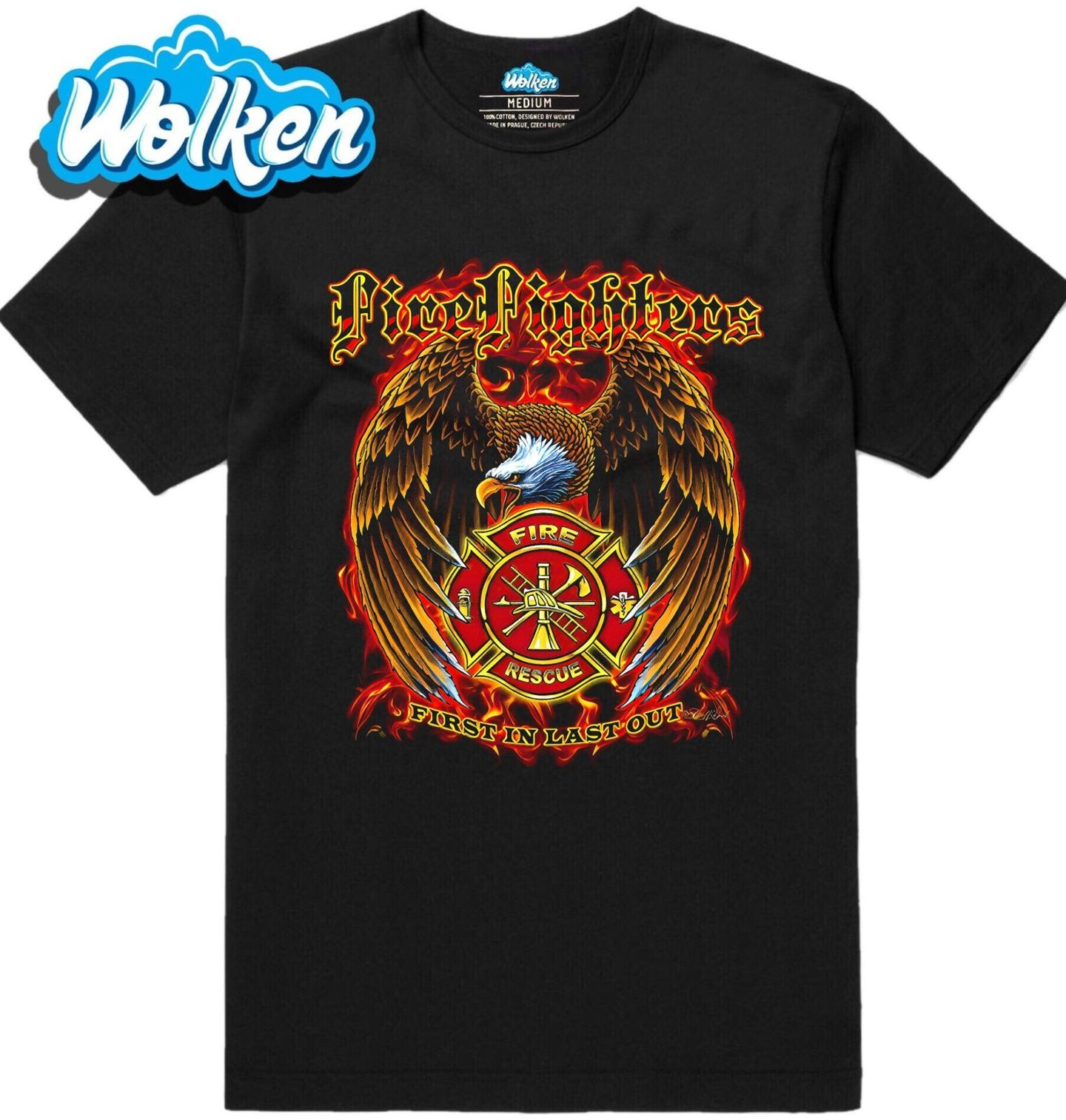 Pánské tričko Orel a Hasičský Znak v Plamenech. Firefighters First In, Last Out – První dovnitř, poslední ven. Motiv, který vyjadřuje odvahu, čest a nasazení – majestátní orel rozepíná křídla nad znakem hasičů, obklopený plameny a symbolem záchrany. Tento ikonický design vzdává hold všem, kteří jdou do akce jako první a odcházejí jako poslední – hasičům.
