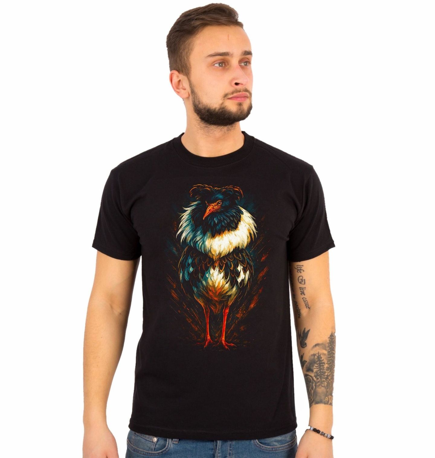 Pánské tričko Orlík kejklíř. Tento pták je známý svým výrazným zobákem, kontrastním zbarvením a nezaměnitelným chocholkem. Orlík kejklíř je dravý orel pocházející z Afriky a jeho jedinečný vzhled dodává ilustraci energii, sílu a exotický nádech. Detailní kresba zvýrazňuje strukturu peří i dramatický výraz, díky čemuž motiv působí moderně a stylově.