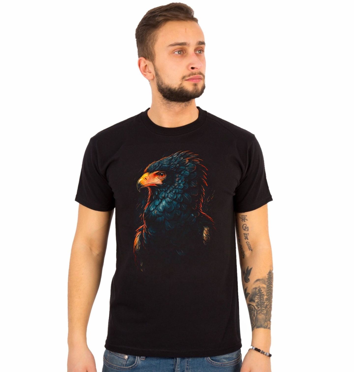 Pánské tričko Orlík kejklíř Bateleur. Výrazný pták Bateleur (Terathopius ecaudatus), známý také jako orel kejklíř, patří mezi nejikoničtější dravce afrických savan. Tento jedinečný motiv zachycuje pták Bateleur v dramatickém stylu s důrazem na silný zobák, temné peří a pronikavý výraz. Elegantní ilustrace zvýrazňuje exotickou krásu druhu a přináší do designu energii divoké přírody.