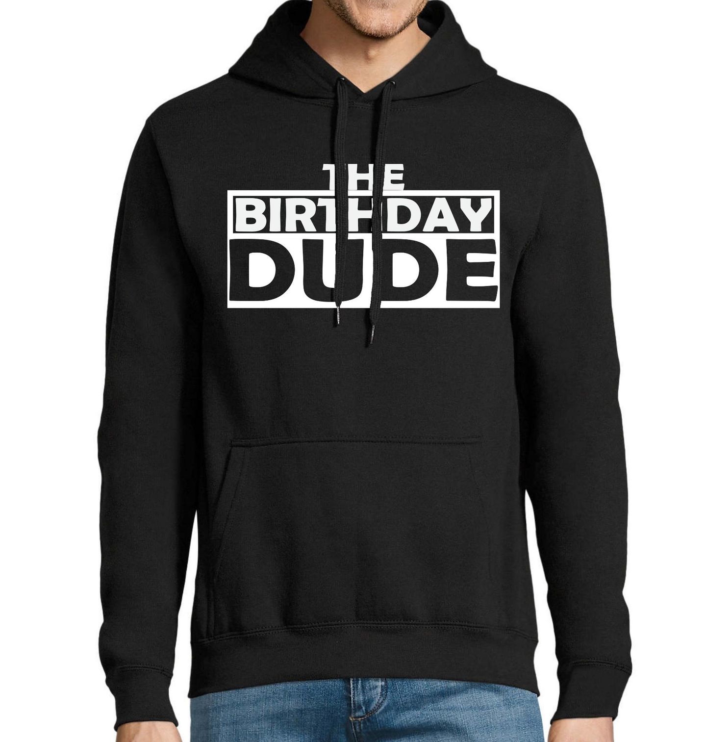 Pánská mikina Oslavenec The Birthday Dude. Stylový a výrazný motiv s textem „The Birthday Dude“, což v překladu znamená „Narozeninový týpek“ nebo „Oslavenec“, je ideální volbou pro každého, kdo slaví své narozeniny ve velkém stylu. Tento design jasně říká, kdo je hlavní hvězda dne. Minimalistické černo-bílé provedení dodává motivu moderní a univerzální vzhled, který se hodí na každou narozeninovou oslavu, párty nebo jako vtipný dárek.