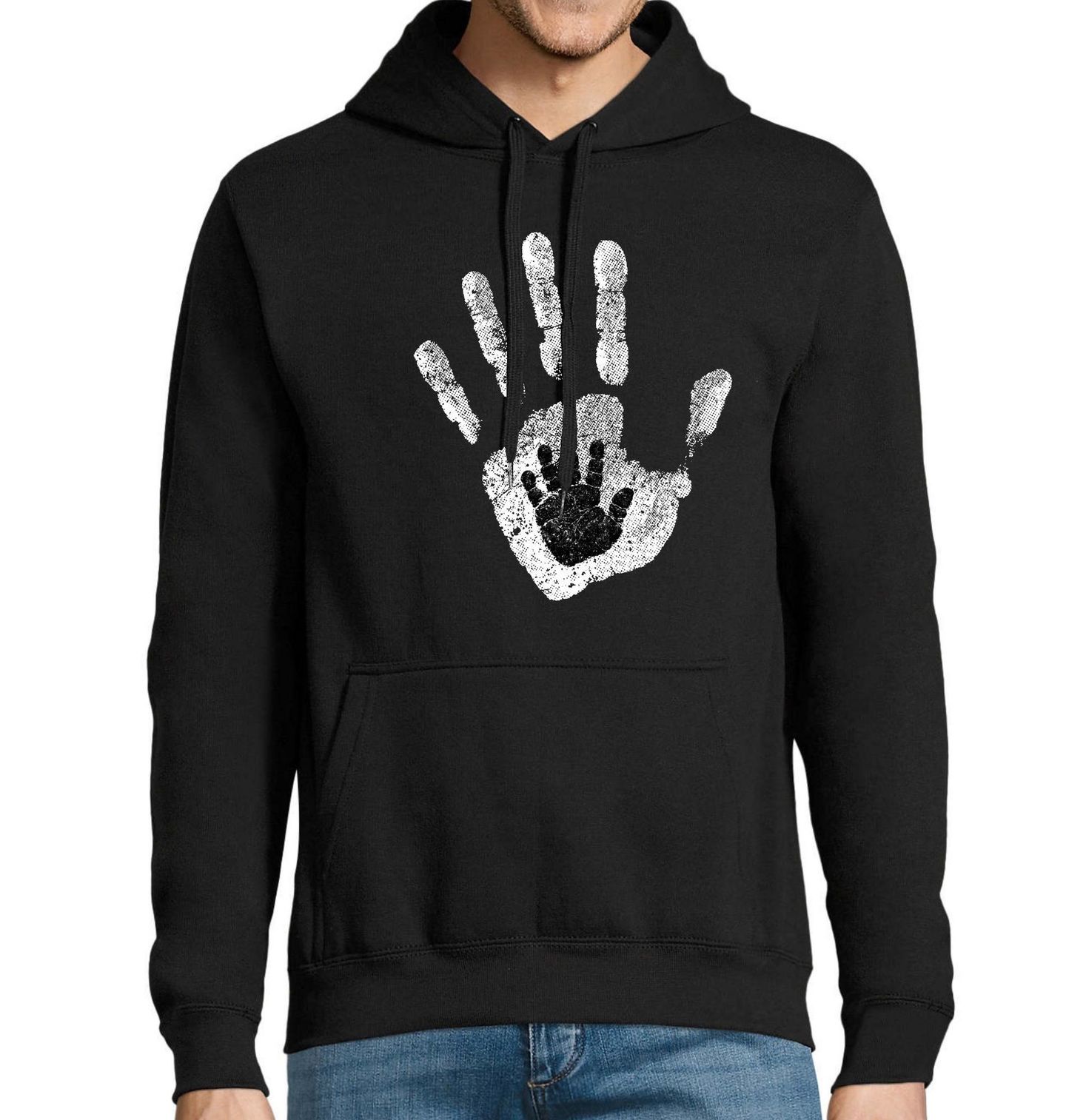 Pánská mikina Otisk Matky a Dítěte. Velký otisk ruky symbolizuje ochranu a lásku, zatímco menší otisk uvnitř představuje nové dítě a začátek společné životní cesty. Tento design je krásnou připomínkou období, kdy vzniká nový život a kdy těhotenství mění vše v něco výjimečného. Perfektní volba pro budoucí rodiče, maminky i jako dárek k oznámení těhotenství nebo narození dítěte.