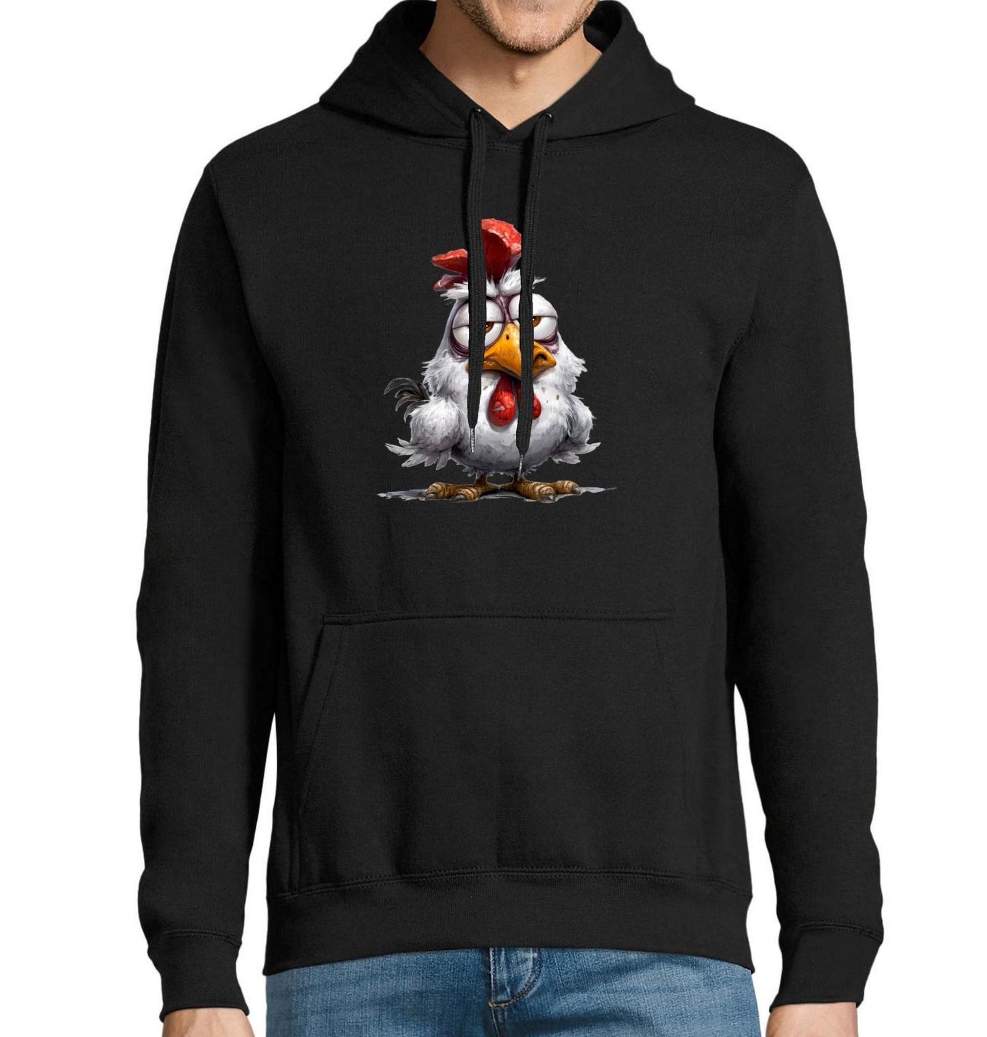 Pánská mikina Otrávený Kohout. Tahle výrazná a pořádně otrávená slepice přesně vystihuje náladu, kdy je na všechno trochu moc. Velké unavené oči, padající hřebínek a lehce rozcuchané peří dělají z motivu skvělý humoristický kousek pro každého, kdo má rád sarkasmus a nadsázku. Hodí se pro každého, komu je blízká farma, venkovský život a nadhled nad každodenními starostmi.