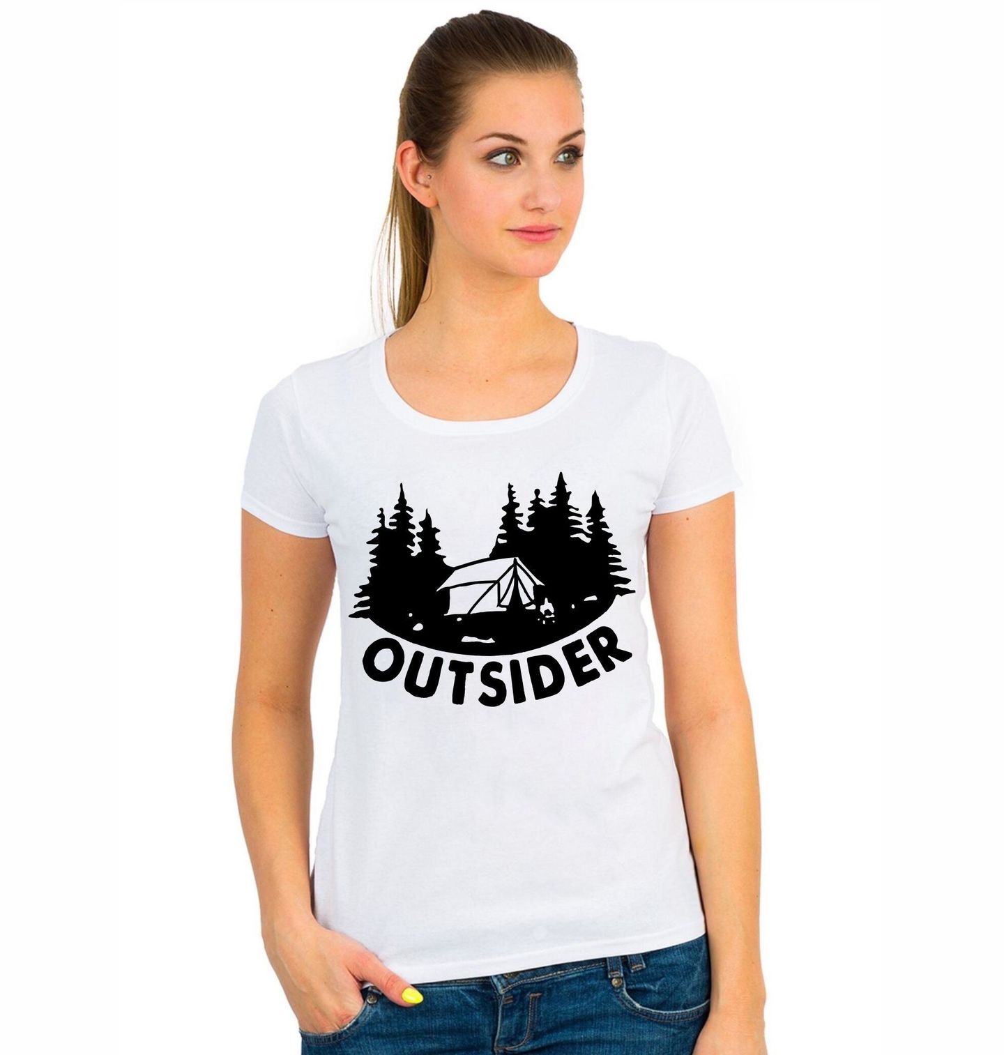 Dámské tričko Outsider Venku je to lepší. Výrazný černobílý motiv s lesem, stanem a nápisem OUTSIDER. Pro všechny, kdo raději spaní pod hvězdami než pod stropem. Ideální potisk pro kempery, turisty a outdoorové typy, kteří milují camping, les a stan.