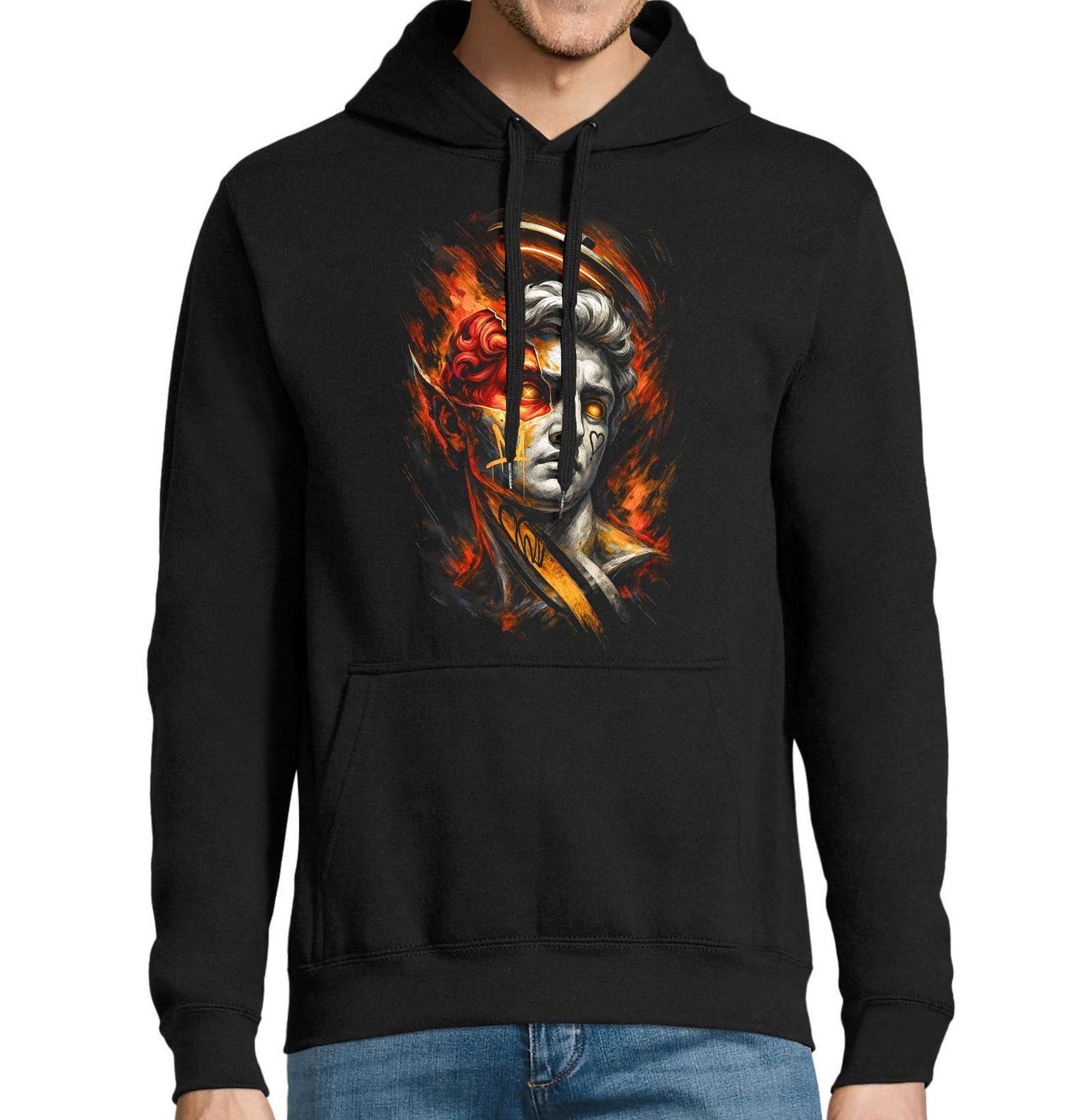 Pánská mikina Padlý David. David je biblický hrdina, symbol odvahy a vítězství nad silnějším protivníkem. Michelangelo Buonarroti jej zobrazil jako mladíka těsně před soubojem s Goliášem – v okamžiku soustředění, napětí a vnitřní síly. Socha se stala jedním z nejslavnějších děl světového umění a ikonou lidské dokonalosti. V této moderní verzi však není David nedotknutelný. Je „zničený“, poznamenaný. Graffiti a plameny symbolizují dnešní svět – tlak, chaos, rebelii i osobní proměnu.