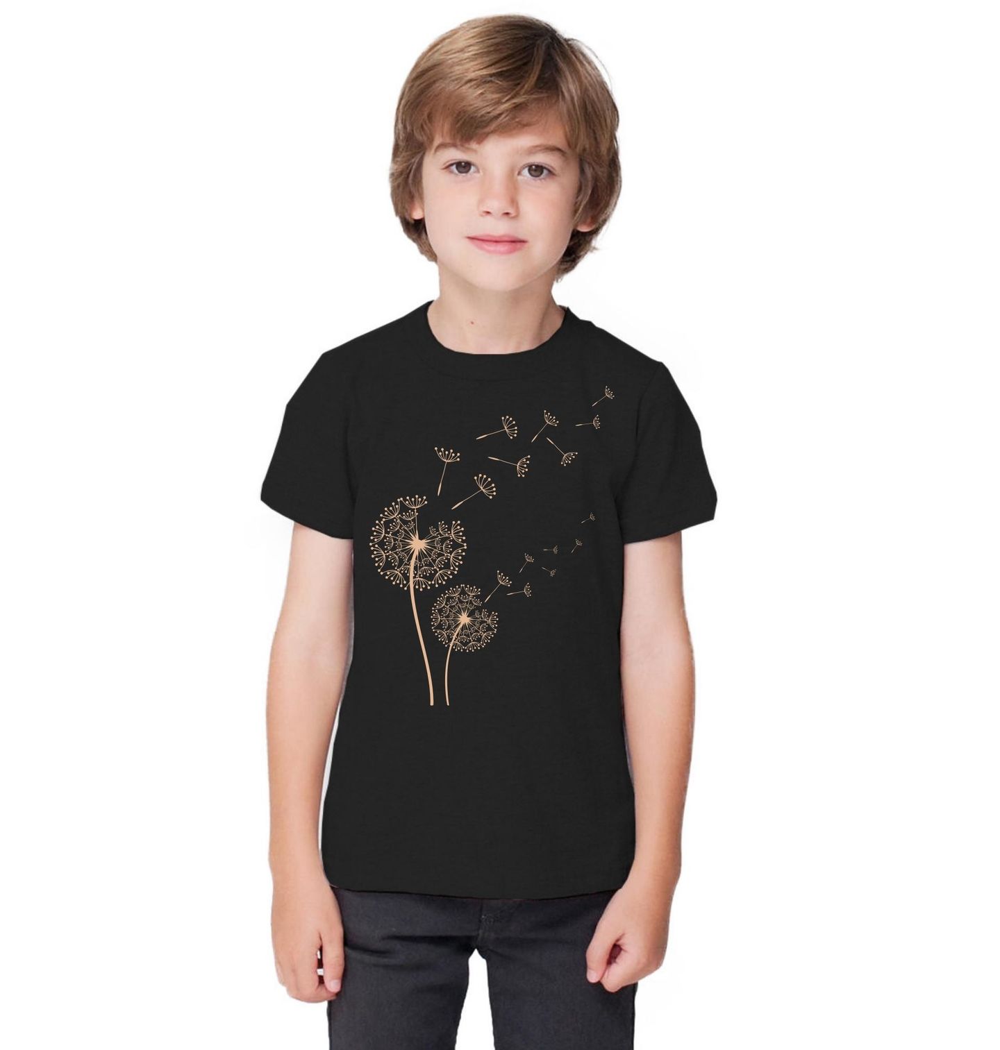 Dětské tričko Pampeliška ve Větru. Jemný motiv pampelišky, ze které se rozlétají semínka do prostoru. Elegantní a minimalistický design evokuje lehkost, přírodu a pomíjivou krásu okamžiku.