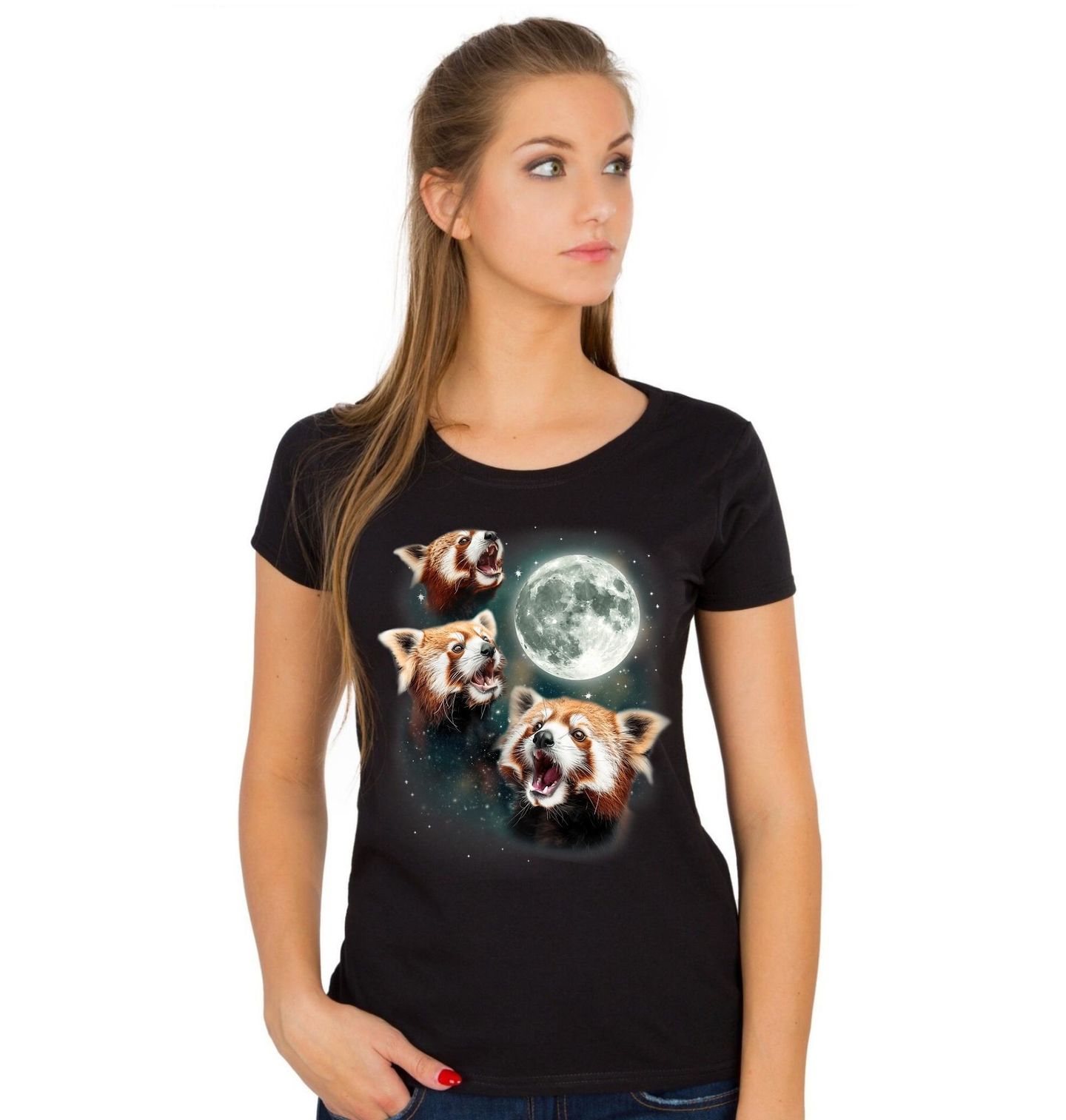 Dámské tričko Pandy Červené vyjící na Měsíc. Kultovní internetové meme „Three Wolf Moon“ má novou roztomilou tvář – a hned trojitou! Panda červená v trojím provedení hledí a volá k zářícímu měsíci, zatímco hvězdy kolem září jako v pohádce. Tento motiv je dokonalým mixem roztomilosti, kosmické atmosféry a vtipu, který ocení každý fanoušek pandy červené, měsíce a originálních memů.
