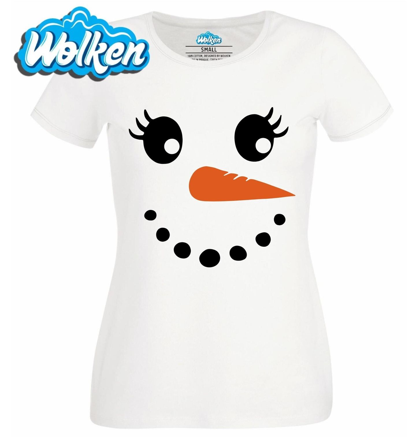 Dámské tričko Paní Sněhuláková. Motiv Paní Sněhuláková dodává Vánocům šmrnc a hravost. Mrkvový nos, jemné řasy a milý úsměv podtrhují kouzelnou atmosféru svátků. Perfektní pro ženy, které chtějí prožít Vánoce s radostí, elegancí a veselým zimním motivem.