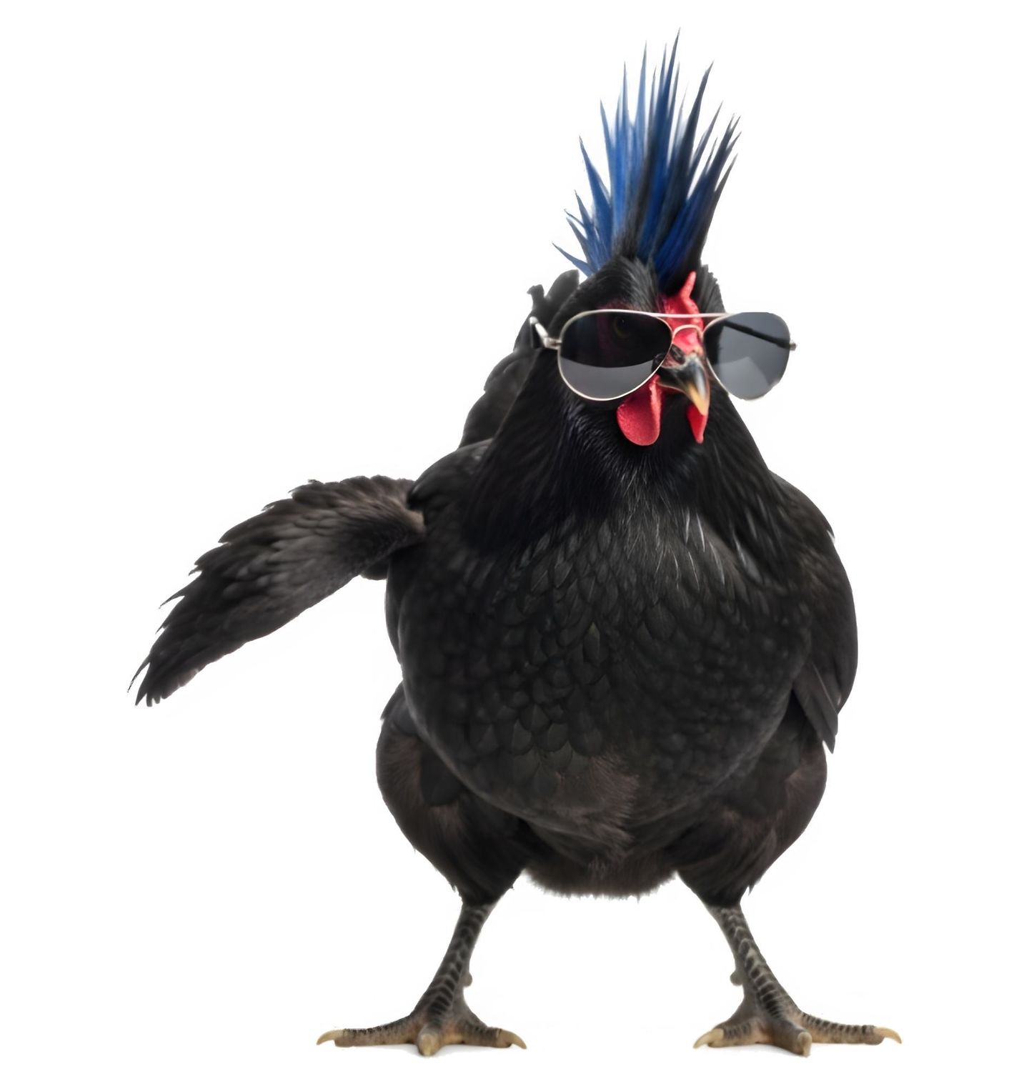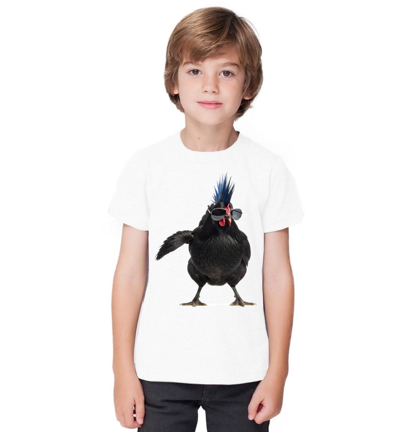 Dětské tričko Pankáč Slepice s Brýlemi. Černá slepice jako pořádný pankáč, který zaujme svým výrazem i doplňky. Výrazné brýle a rebelský vzhled dodávají motivu jedinečný charakter a humor, který ocení každý milovník originálních a netradičních designů.