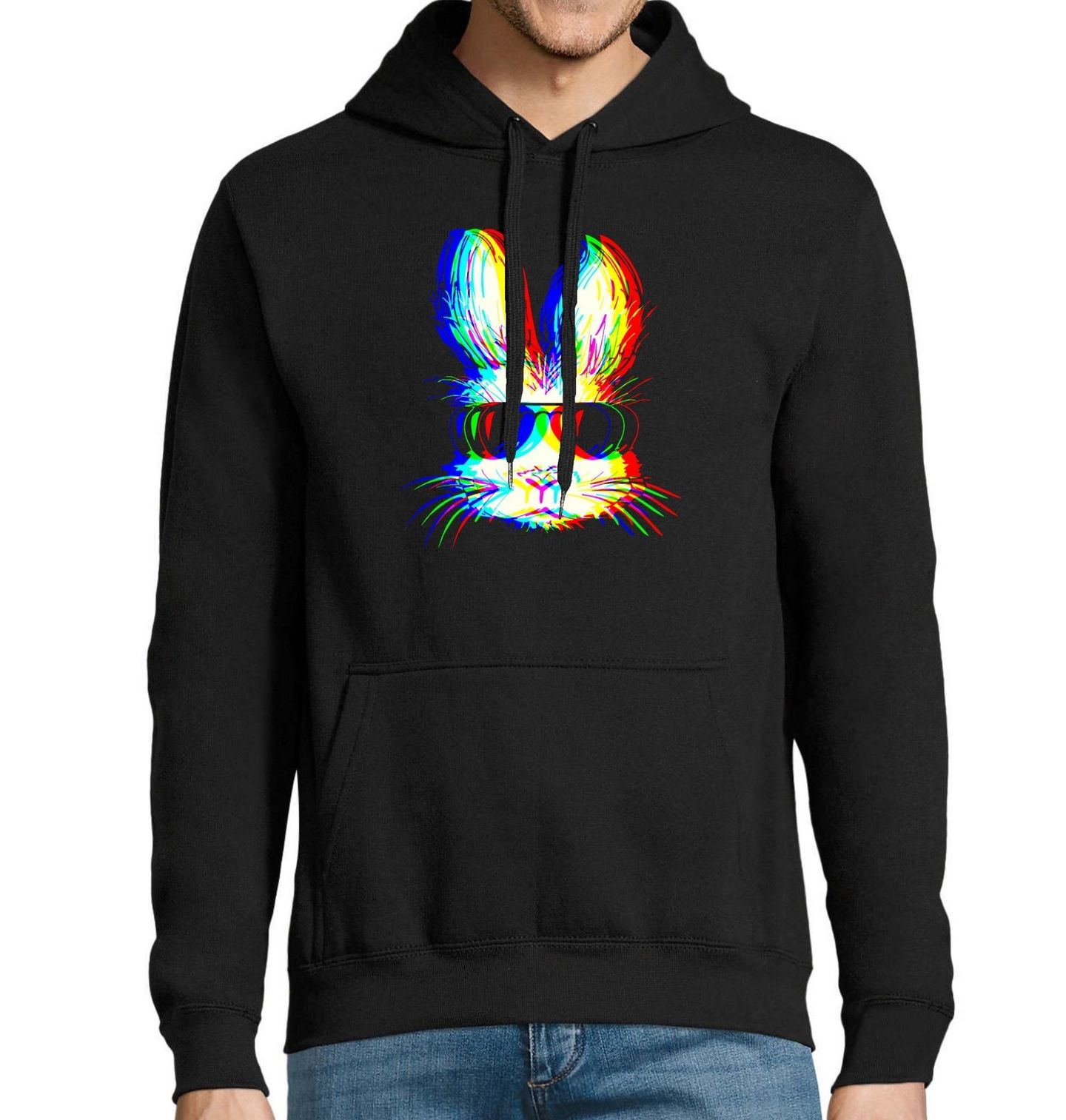 Pánská mikina Párty Králík v Brýlích Glitch Bunny. Tento výrazný motiv zachycuje králíka v tmavých brýlích, připraveného ovládnout každou párty. Glitch efekt dodává designu moderní digitální vzhled, který okamžitě přitáhne pozornost. Ideální pro fanoušky streetwearu, elektronické hudby a každého, kdo se nebojí ukázat svou divokou stránku.