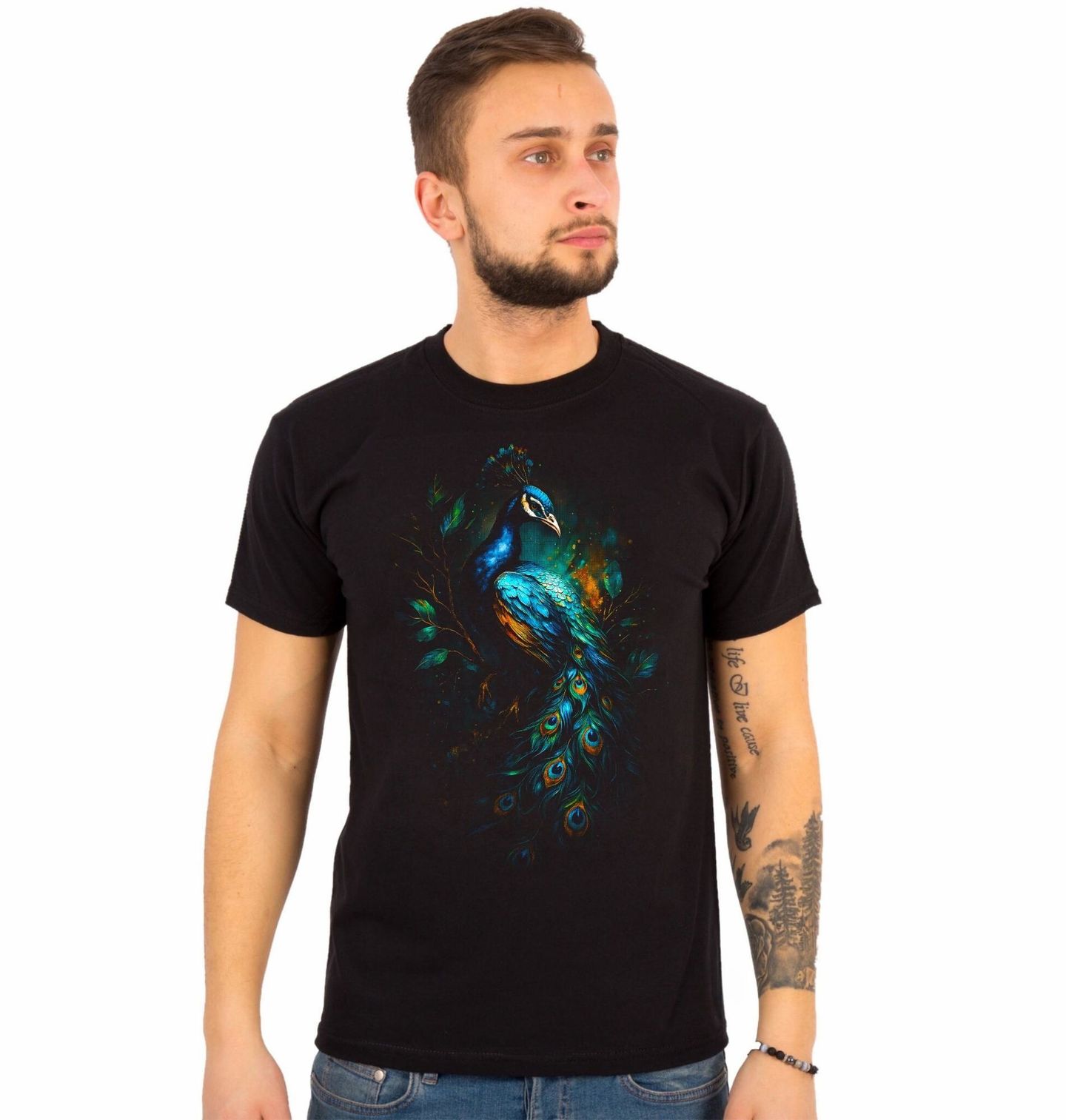 Pánské tričko Páv modrý. Páv korunkatý je také někdy nazýván jako páv modrý. Spolu s pávem zeleným patří do čeledi bažantovitých. Páv modrý je pták symbolizující krásu, hrdost, noblesu a jedinečnost. V mnoha kulturách je spojován s královskou důstojností, ochranou a nesmrtelností.