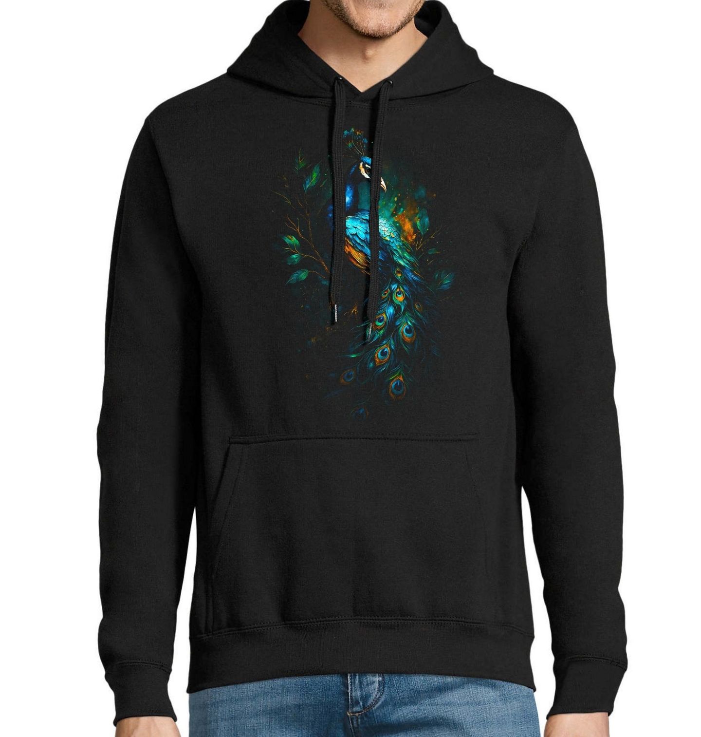 Pánská mikina Páv modrý. Páv korunkatý je také někdy nazýván jako páv modrý. Spolu s pávem zeleným patří do čeledi bažantovitých. Páv modrý je pták symbolizující krásu, hrdost, noblesu a jedinečnost. V mnoha kulturách je spojován s královskou důstojností, ochranou a nesmrtelností.