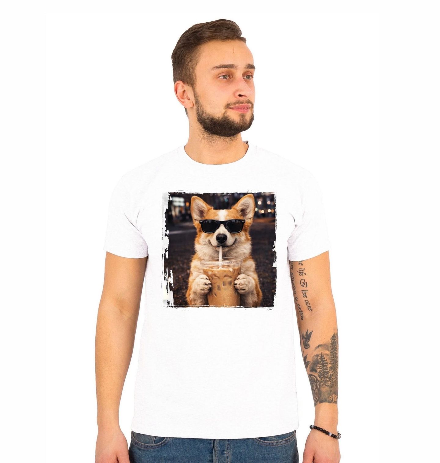 Pánské tričko Pembroke Corgi s Ledovou Kávou. Originální motiv zachycuje roztomilého psa v moderním stylu, který si vychutnává ledovou kávu a působí maximálně pohodově. Tento pes s brýlemi přináší kombinaci humoru a stylu, kterou ocení každý pejskař. Na obrázku je plemeno welsh corgi, známé svým nízkým vzrůstem, velkými ušima a přátelskou povahou. Ledová káva je nejlepší do teplých letních dnů.