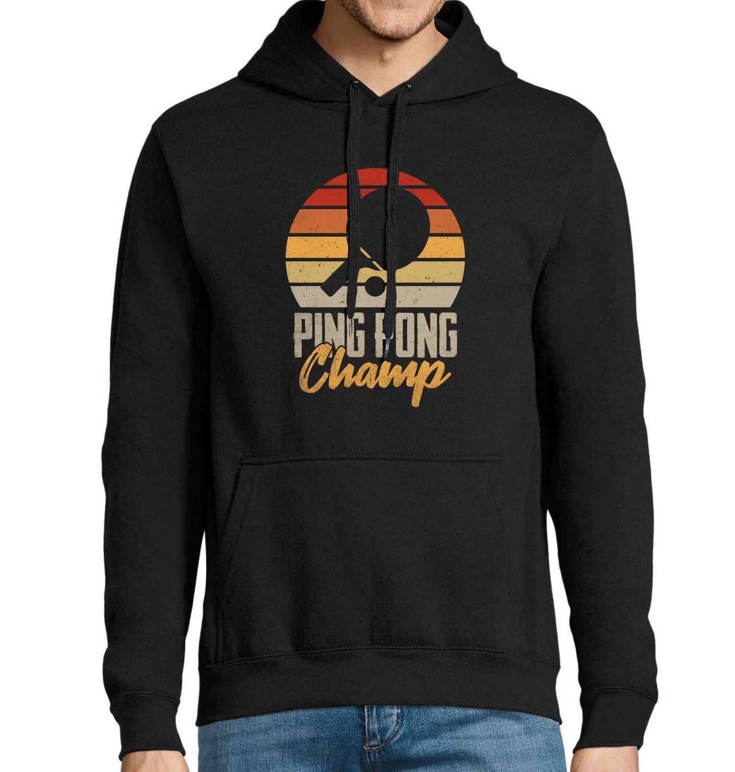 Pánská mikina Ping Pong Retro Champ. Stylový retro design pro opravdové šampiony stolního tenisu. Ať už hraješ rekreačně nebo soutěžně, tohle tričko dává jasně najevo, kdo u stolu drží pálku pevně v ruce. Perfektní dárek pro každého, kdo žije pro rychlé výměny, ostré smeče a vítězné body.