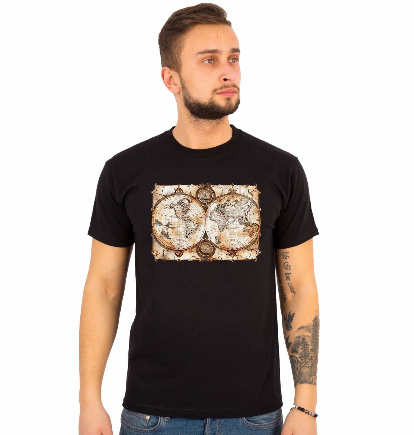 Pánské tričko Pirátská Mapa Světa. Vydej se na cestu plnou dobrodružství, objevů a dávných legend. Tento motiv v sobě spojuje kompas jako symbol správného směru, historickou mapu světa plnou tajemství a atmosféru, kterou milují piráti i všichni milovníci dobrodružství. Design připomíná staré námořní mapy, podle kterých se plánovalo cestování za pokladem, svobodou a neznámem.