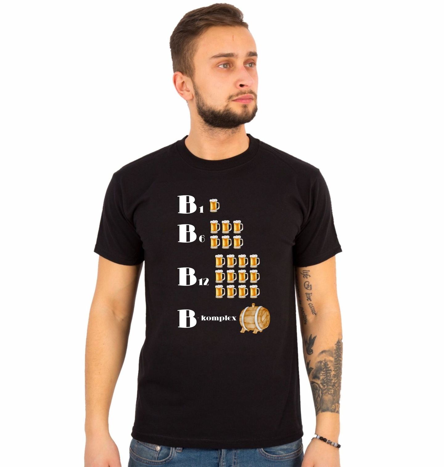 Pánské tričko Pivní dávkování B-vitaminů. Originální a vtipný design Pivo & Vitamíny pro všechny, kdo milují humor, memy a lehkou nadsázku. Motiv si hraje s názvy vitaminů skupiny B – B1, B6, B12 a B-komplex – a nahrazuje je počtem půllitrů piva… až po celý sud! Tento motiv je skvělý dárek pro kamarády, milovníky pivo, hospodský humor i fanoušky slovních hříček.