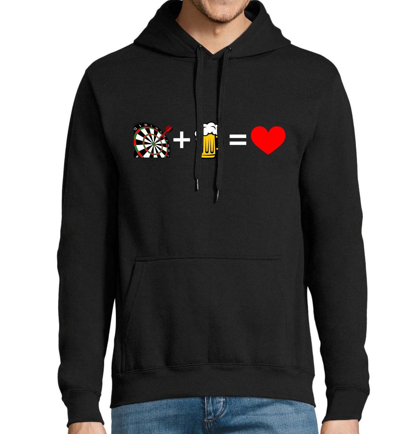 Pánská mikina Pivní Rovnice Šipkaře. Miluješ šipky, pivo a tu správnou hospodskou atmosféru? Tahle tričková rovnice mluví za všechno! Ideální outfit pro každého šipkaře, který ví, že když to spojíš se správným pivem, výsledkem je láska na první hod. Motiv s emoji, jednoduchou rovnicí a vtipem potěší každého fanouška šipek i zlatavého moku.